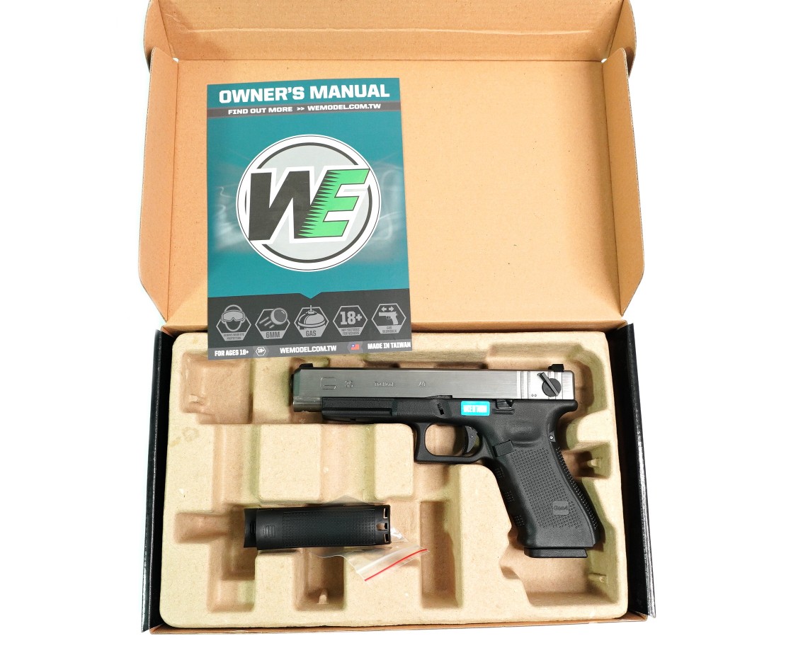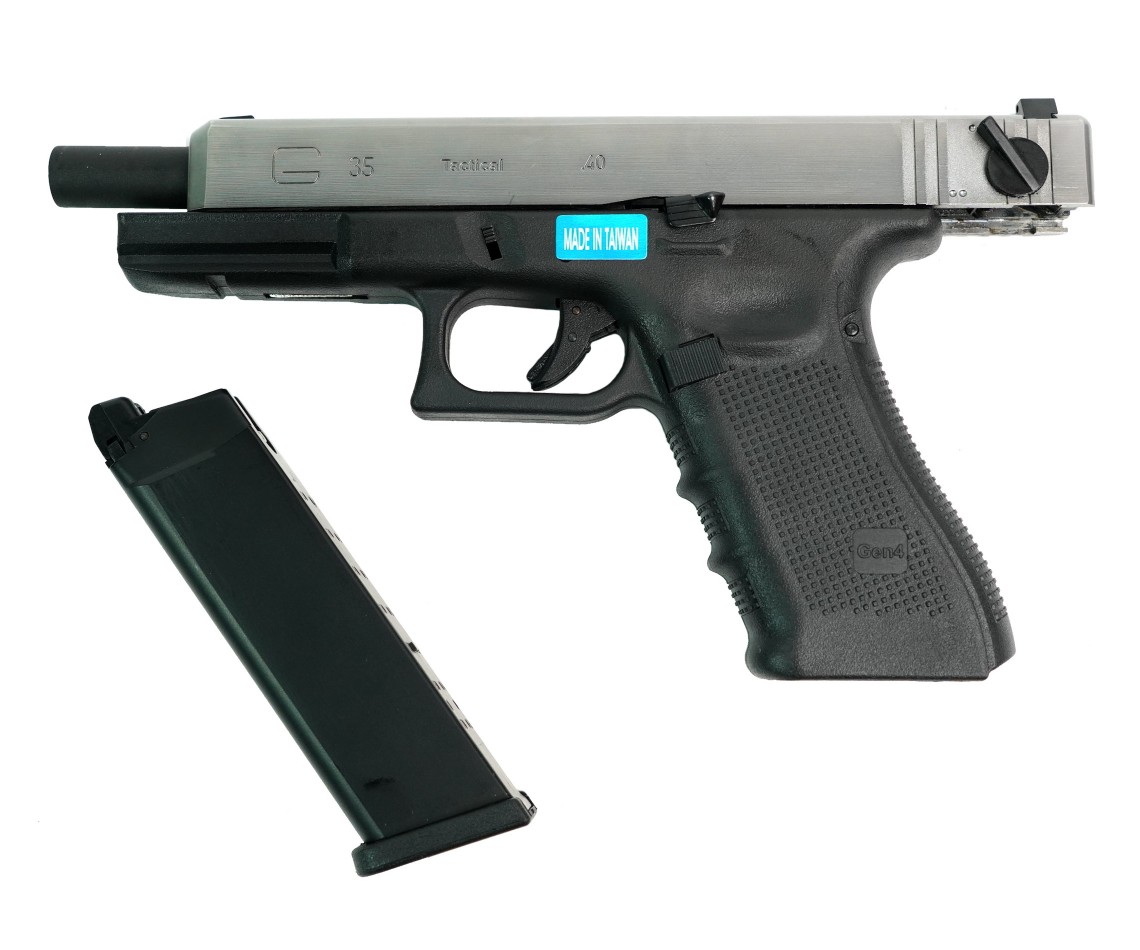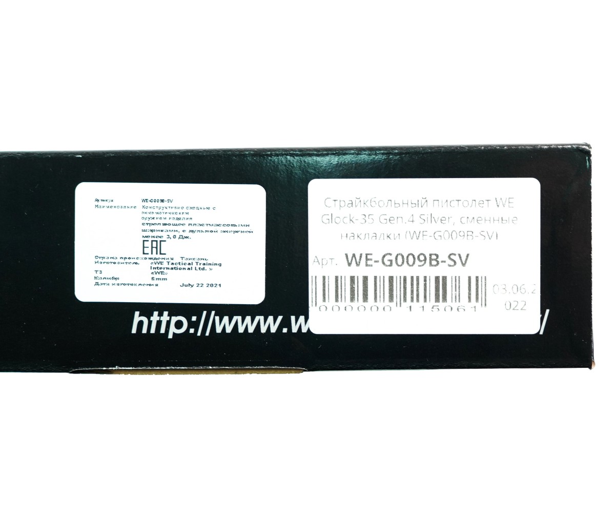 Описание страйкбольного пистолета WE Glock-35 gen4 Silver (WE-G009B-SV):
