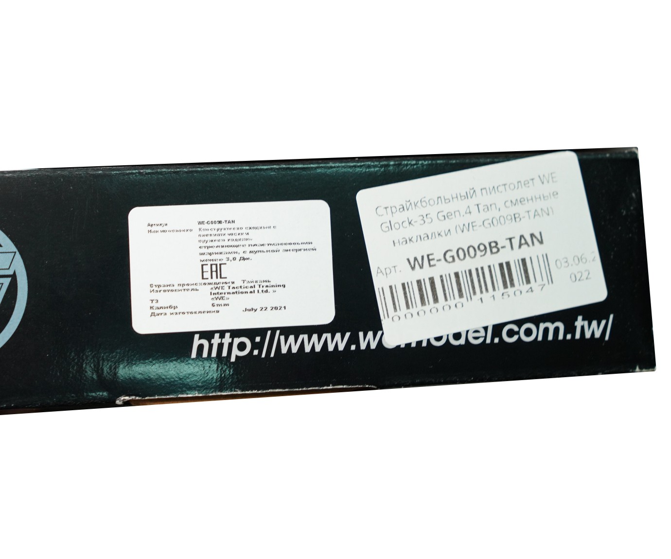 Описание страйкбольного пистолета WE Glock-35 gen4 Tan (WE-G009B-TAN):