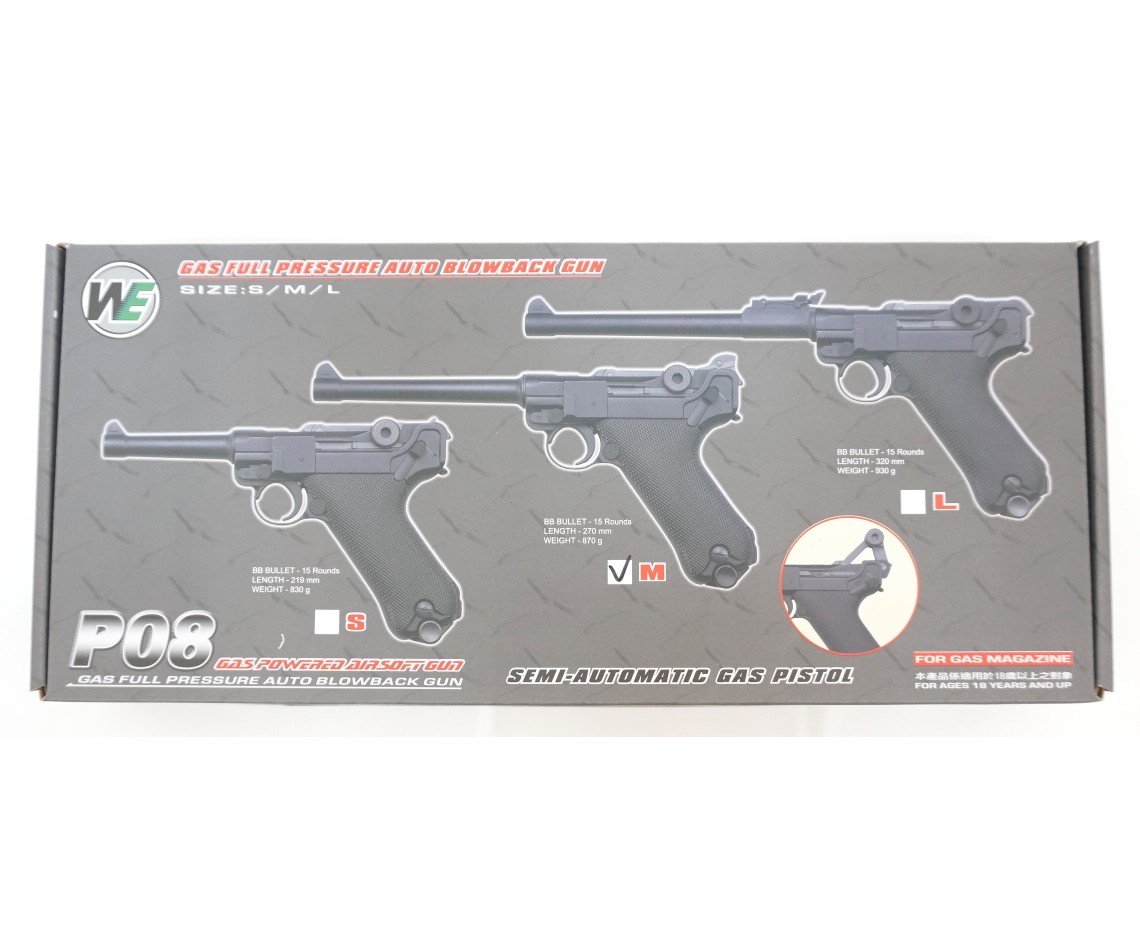 Описание страйкбольного пистолета WE Luger P-08(M) 6":