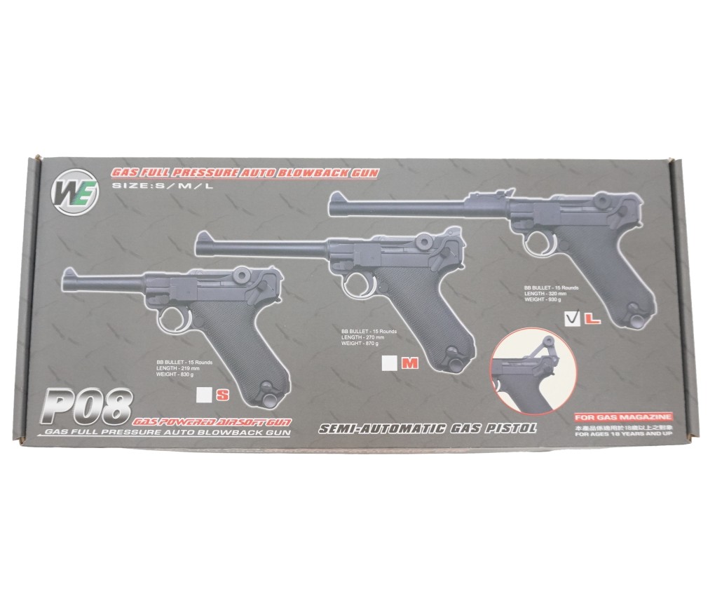 Описание страйкбольного пистолета WE Luger P-08(L) 8":