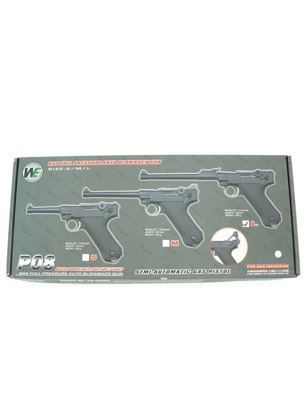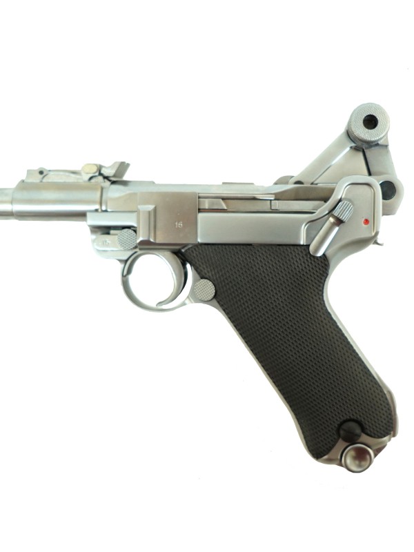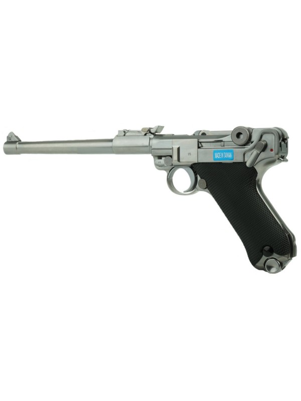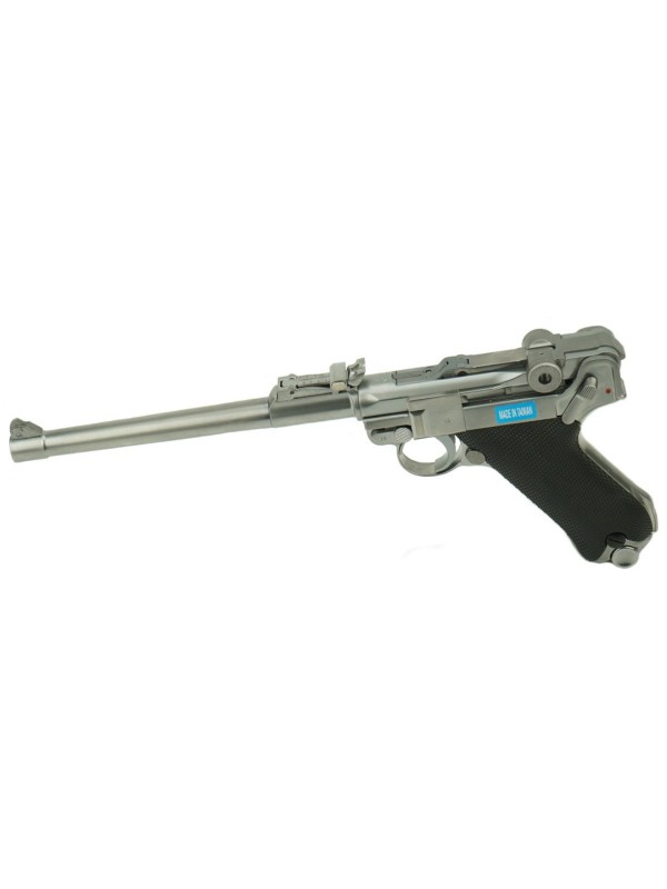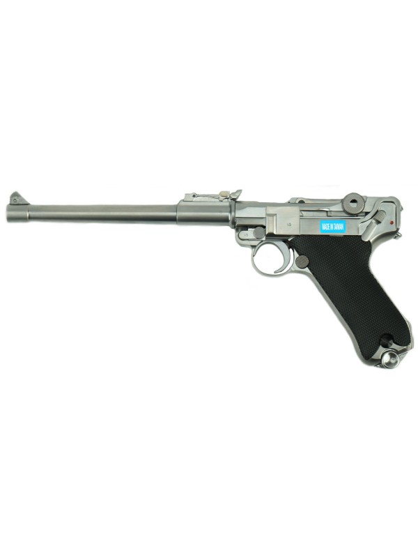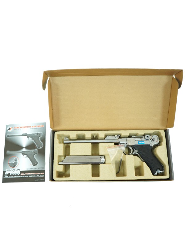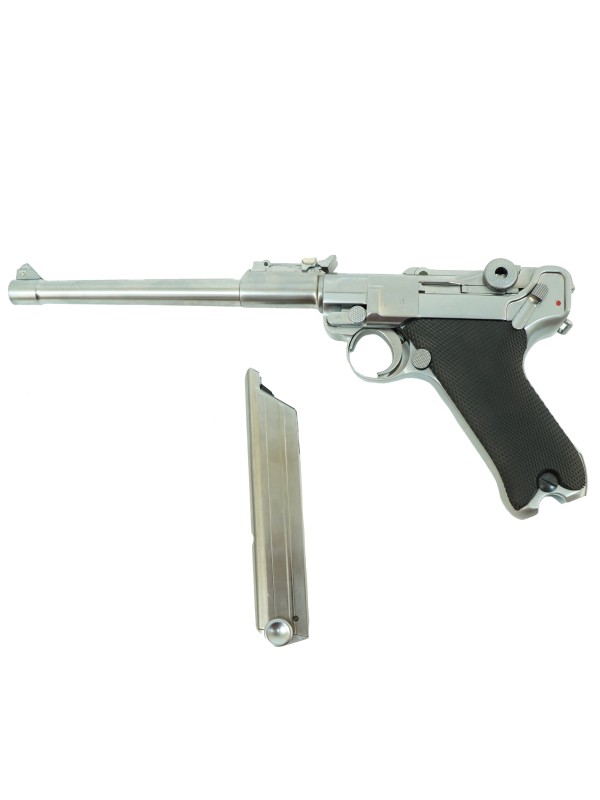 Описание страйкбольного пистолета WE Luger P-08(L) 8" Silver: