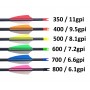 Опционально стрелы можно комплектовать спортивными хвостовиками, устанавливаемыми на алюминиевые пины. Линейка спайна (жесткости) варьируется от 350 до 800, что позволит подобрать стрелу под любую растяжку и силу натяжения. Для удобства различия стрел по спайну, каждый вид стрел оснащается своим цветом оперения и хвостовика.