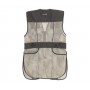Профессиональный стрелковый жилет, изготовлен полностью из сетчатый ткани, со ставками из плотной из ткани. Сетка способствует вентиляции тела стрелка и создает комфортные ощущения даже в самую жаркую погоду. Впереди жилетка застегивается на молнию. На плечах имеются карманы для амортизатора, для четкой фиксации оружия "в плече" во время вскидки. Гель – наполнитель, помещенный в нее, обладает способностью гасить импульс отдачи, рассеивая его действие и переводя его в плоскость перпендикулярную прикладу. Для прочности плечевая часть простегана. У жилета имеются два больших грузовых кармана для патронов и стреляных гильз. И один скрытый внутренний карман на молнии. В поясной части жилета имеются регулируемые боковые ремни на пуговицах, регулирующие размер пояса. Покрой жилета свободный с разрезами по бокам.