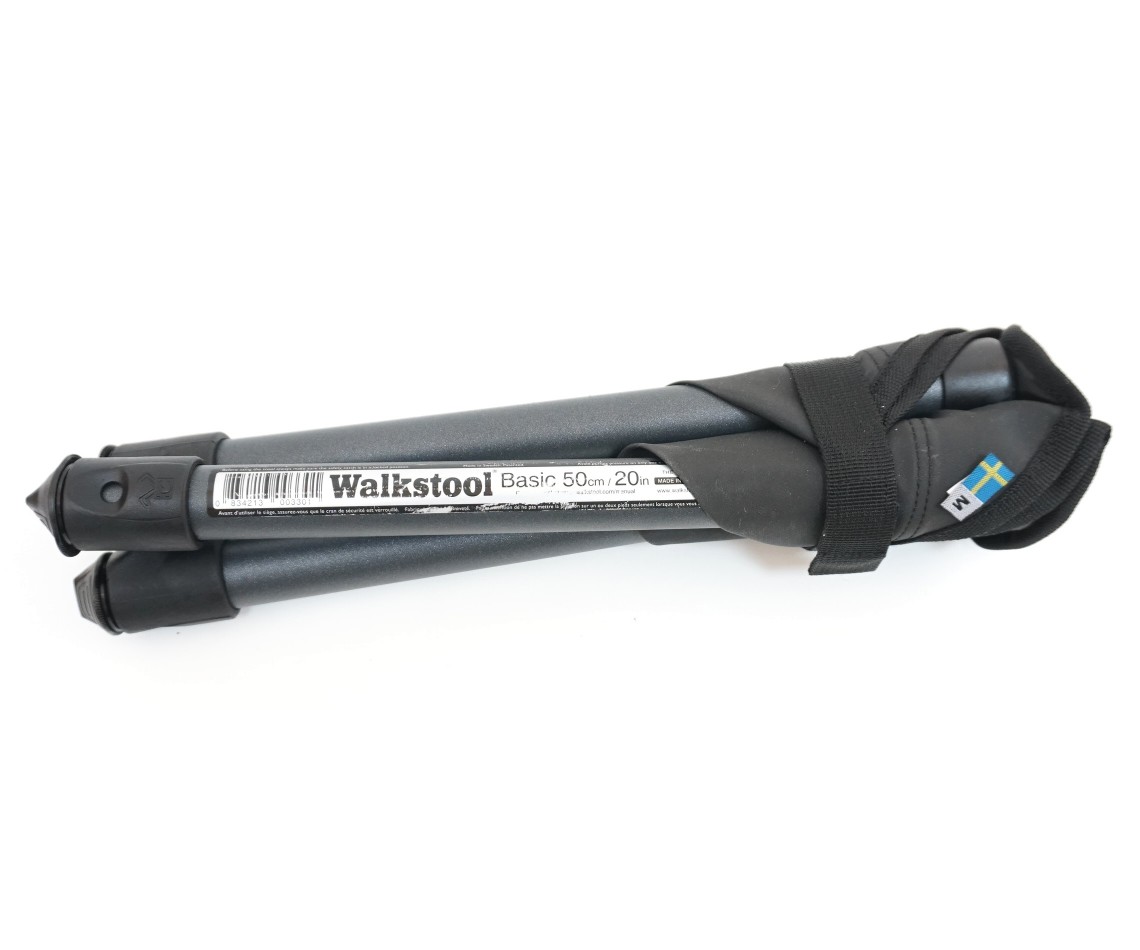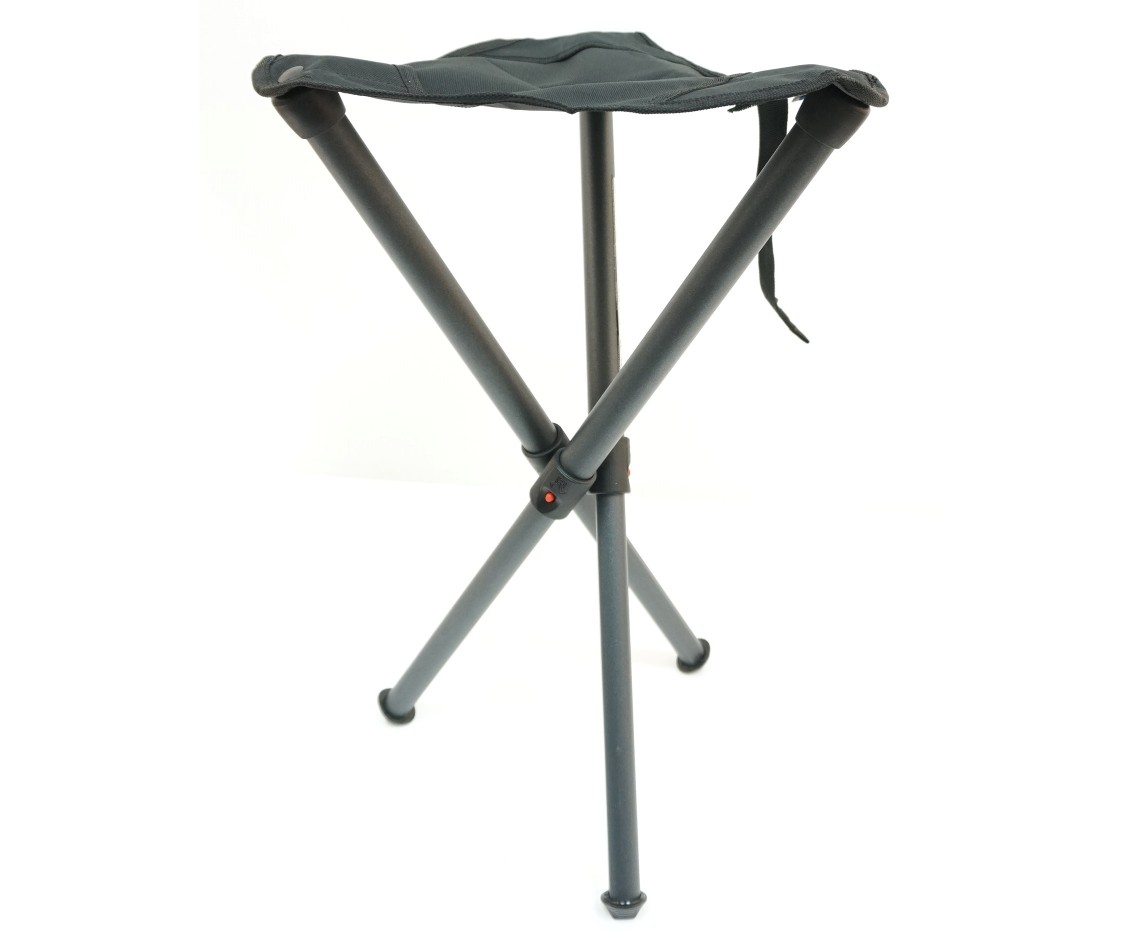 Удобство использования складного стула с телескопическими ножками заключается в том, что при небольшом весе и размере, это изделие предлагает высокий уровень комфорта. Высота разложенного стула составляет 50 см. Этого вполне достаточно, чтобы сидеть на нем человеку среднего роста с таким же удобством, как и на домашних стульях. Размер сиденья в 32,5 см. Стул выдерживает максимальную нагрузку в 150 кг. Такая прочность обусловлена выбором качественных материалов, из которых стул изготовлен. Его основу составляет конструкция из трех алюминиевых ножек, покрытых слоем защитного анодирования. Все ножки соединены между собою на некоторой высоте, поэтому процесс раскладывания конструкции предельно прост и займет всего несколько секунд. Телескопические выдвижные ножки легко удлиняются и надежно фиксируются в выбранном положении. Чтобы сложить стул обратно, необходимо нажать на фиксаторы на ножках и сложить их. Материал сиденья — это полиэстер. Сиденье пошито таким образом, чтобы человеку было удобно сидеть, а нагрузка равномерно распределялась на каждую из ножек стула. Хранится Walkstool B50 в удобном для транспортировки чехле.