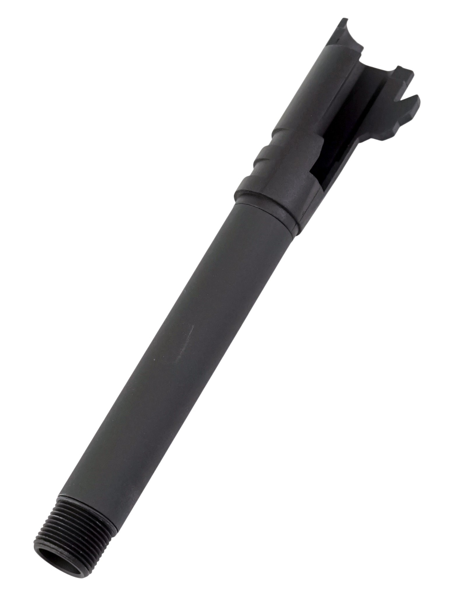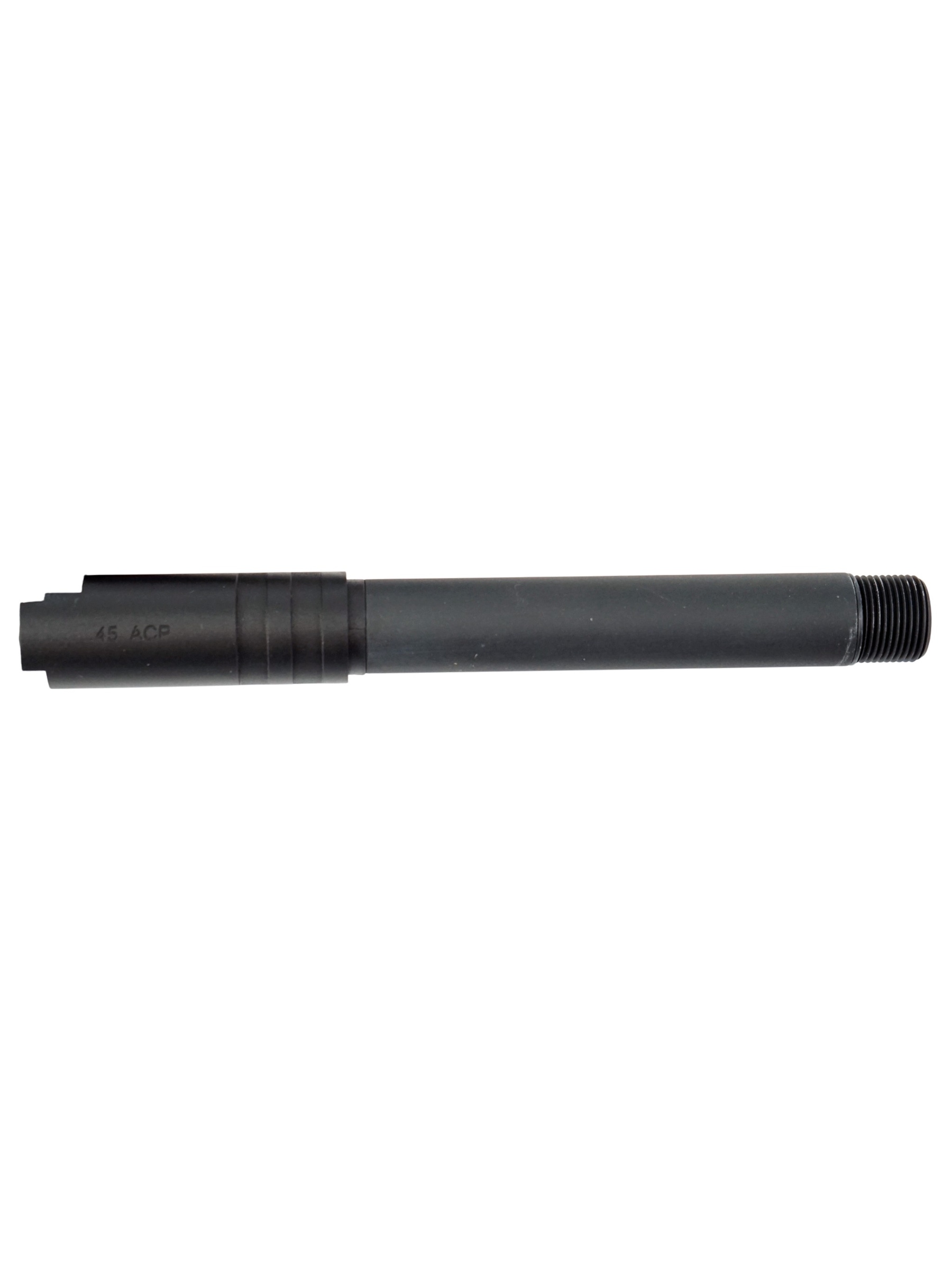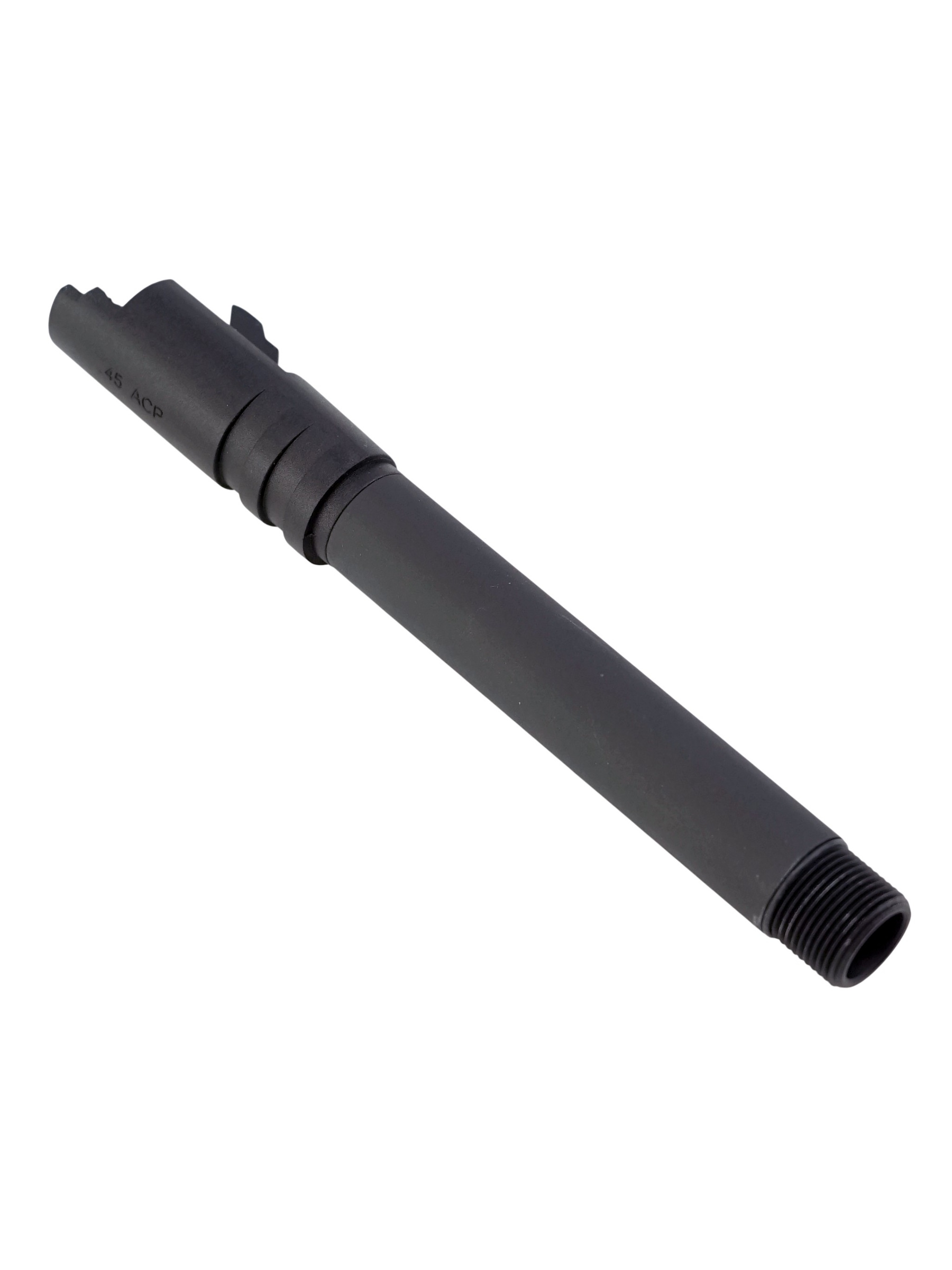 Внешний стволик предназначен для текущего ремонта или модернизации страйкбольных пистолетов модели KP-07 (Colt 1911 M.E.U.) производства компании KJW. На внешней части стволика имеется резьба М14- (отрицательная, CCW) для установки имитатора глушителя либо трассерной насадки.