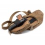 Лямка перестёгивается с одной стороны сумки на другую. Внешний карман - под ключи, зажигалку и прочее. Средний карман с органайзером - под мультитул, фонарик, ручку и т.п. На задней стенке – плоский глубокий карман для документов.
