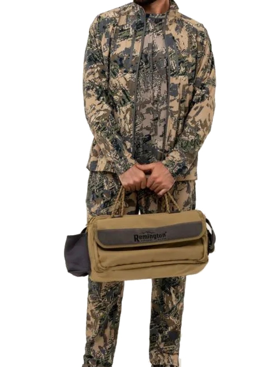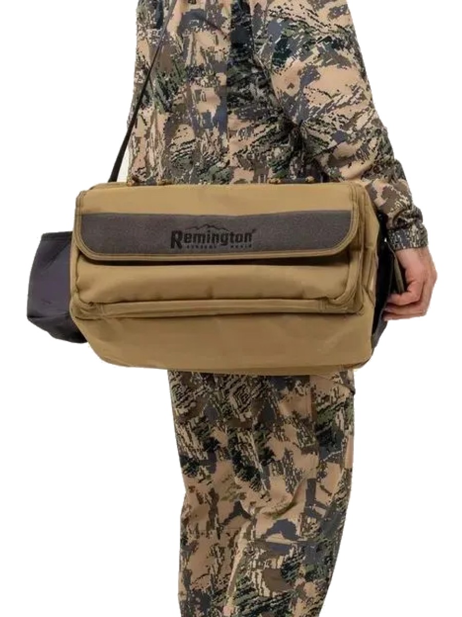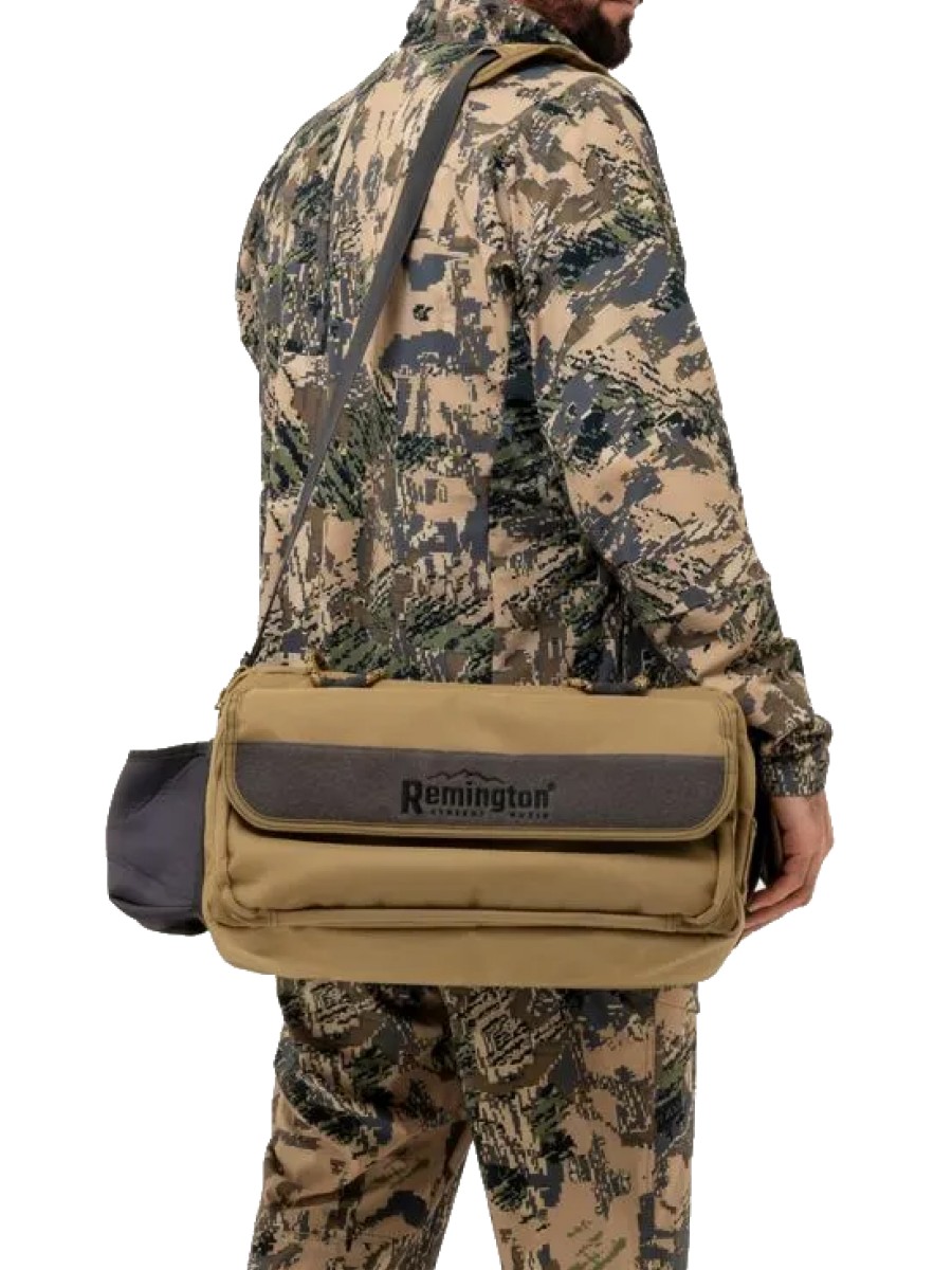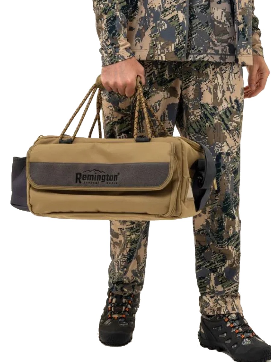 Сумка Remington Hunting Good Luck выполнена из прочного и износостойкого материала Oxford плотностью 600D. Её габариты составляют 45 см в длину, 22 см в высоту и 30 см в ширину, что позволяет удобно размещать необходимые вещи. Модель оснащена удобными ручками из прочной стропы и дополнительным съемным плечевым ремнем на металлических карабинах.