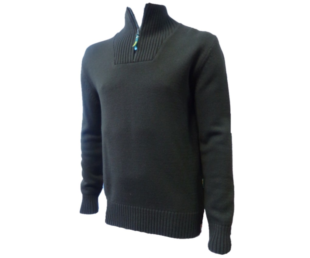 Классический мужской свитер. Сделан в лучших традициях свитера из коллекций одежды для охоты: удобный воротник, застежка молния обеспечит комфорт. Низ изделия и манжеты оформлены вязкой "резинка".