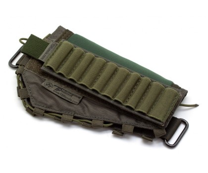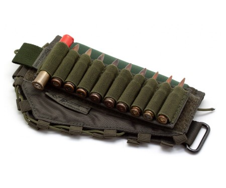 Патронташ Долг для хранения и транспортировки 10 нарезных патронов, цвета хаки. Плотная резинка, шириной 40 мм пришита с определенным шагом для фиксации патронов разного калибра.
