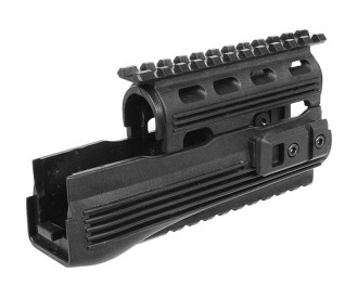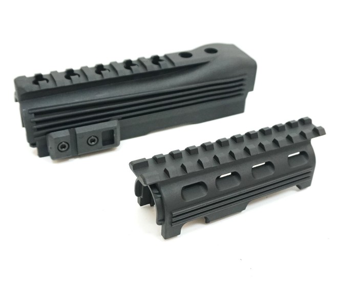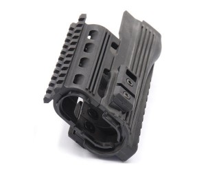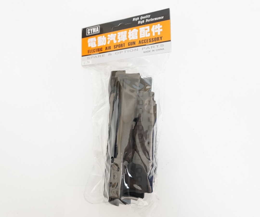 Набор тактический C79 для страйкбольных автоматов АК-серии от компании Cyma, Китай. Изготовлен из ударопрочного пластика. Предназначен для установки на привода Cyma АК 040-й серии, совместимость со всеми остальными приводами АК-серии (этой и других фирм) частичная, то есть установка без модификации не гарантируется. Отличается от базового набора наличием RIS-планок для установки разного навесного оборудования. Комплект: цевье, накладка на газовую трубку.