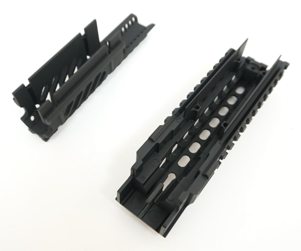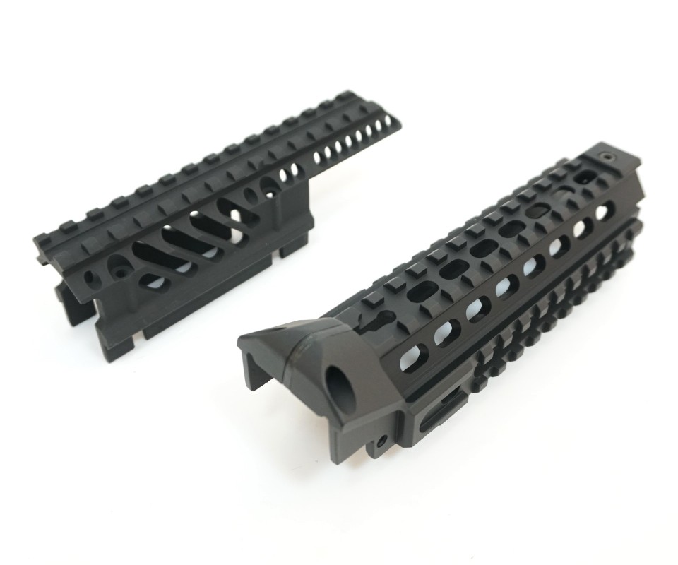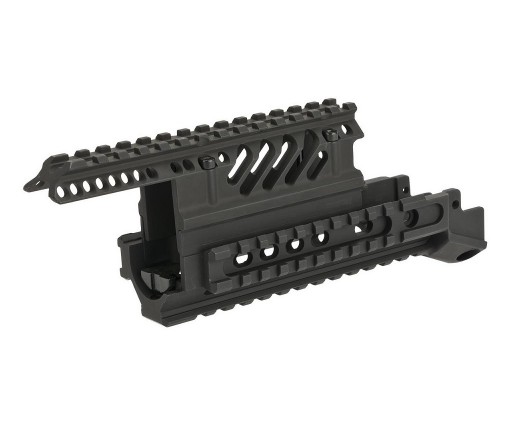 Черное алюминиевое тактическое RIS цевье подходит для установки на оружие серию страйкбольного орудия системы АК. Характеризуется наличием рельс 20 мм.