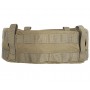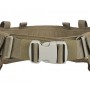 Второй пояс внешний с MOLLE интерфейсом для размещения подсумков, и жесткой частью велкро на внутренней части для фиксирования на брючном ремне, что обеспечивает фиксацию его на талии и останавливает от сползания, в зависимости от размера меняется количество ячеек, также по бокам у него есть доступ к основному силовому ремню для размещения на нем панелей или кобуры. Силовой ремень на фастексе, который ведет во внешний пояс.