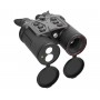 Тепловизор Guide TN430 выглядит как оптический бинокль, однако это конструкция с одним ИК-объективом (второй «объектив» — это блок дальномера) и двумя микродисплеями, по одному в каждом окуляре. Благодаря тому, что изображение с объектива транслируется одновременно на оба экрана, улучшается восприятие глубины и контраста, а глаза во время длительных наблюдений устают намного меньше, чем при работе с монокуляром. Механика тоже понятная, удобная и привычная, как у дневного бинокля с барабаном центральной фокусировки и раздельной диоптрийной подстройкой.