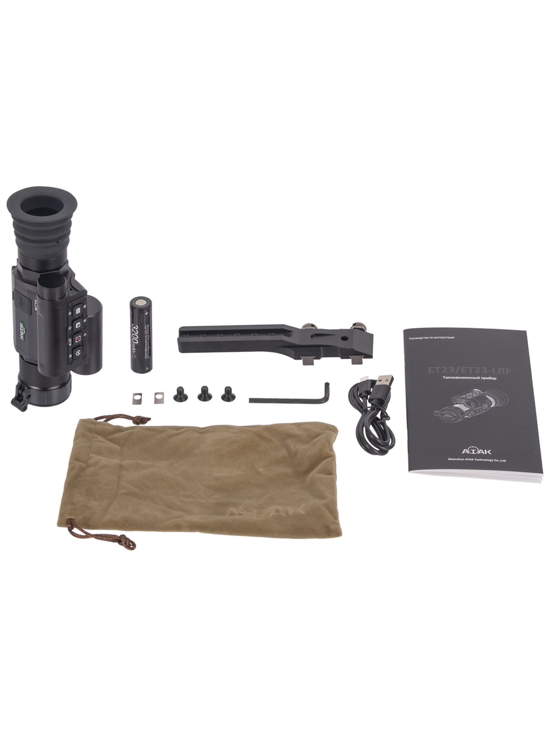 ATAK ET23-45LRF — высококачественный тепловизионный прицел. Модель LRF (Laser Range Finder) оснащена встроенным лазерным дальномером с дальностью измерения до 1000 метров и автоматическим баллистическим калькулятором: пользователю доступен широкий продуманный функционал, отвечающий всем современным потребностям.