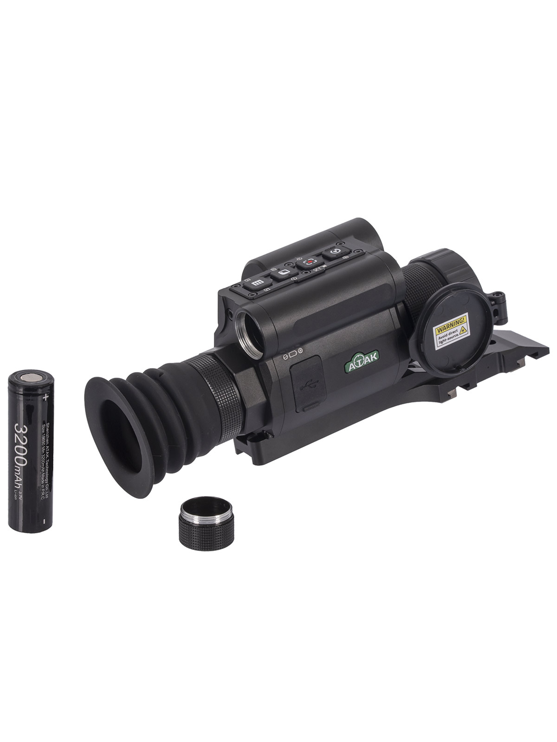 Сенсор с разрешением 384x288 пикселей и объектив 45мм выводят чёткую картинку в любое время суток на OLED дисплей с разрешением 1024x768. Аккумулятор 18650 ёмкостью 3200 мАч обеспечивает до 5 часов автономной работы.
