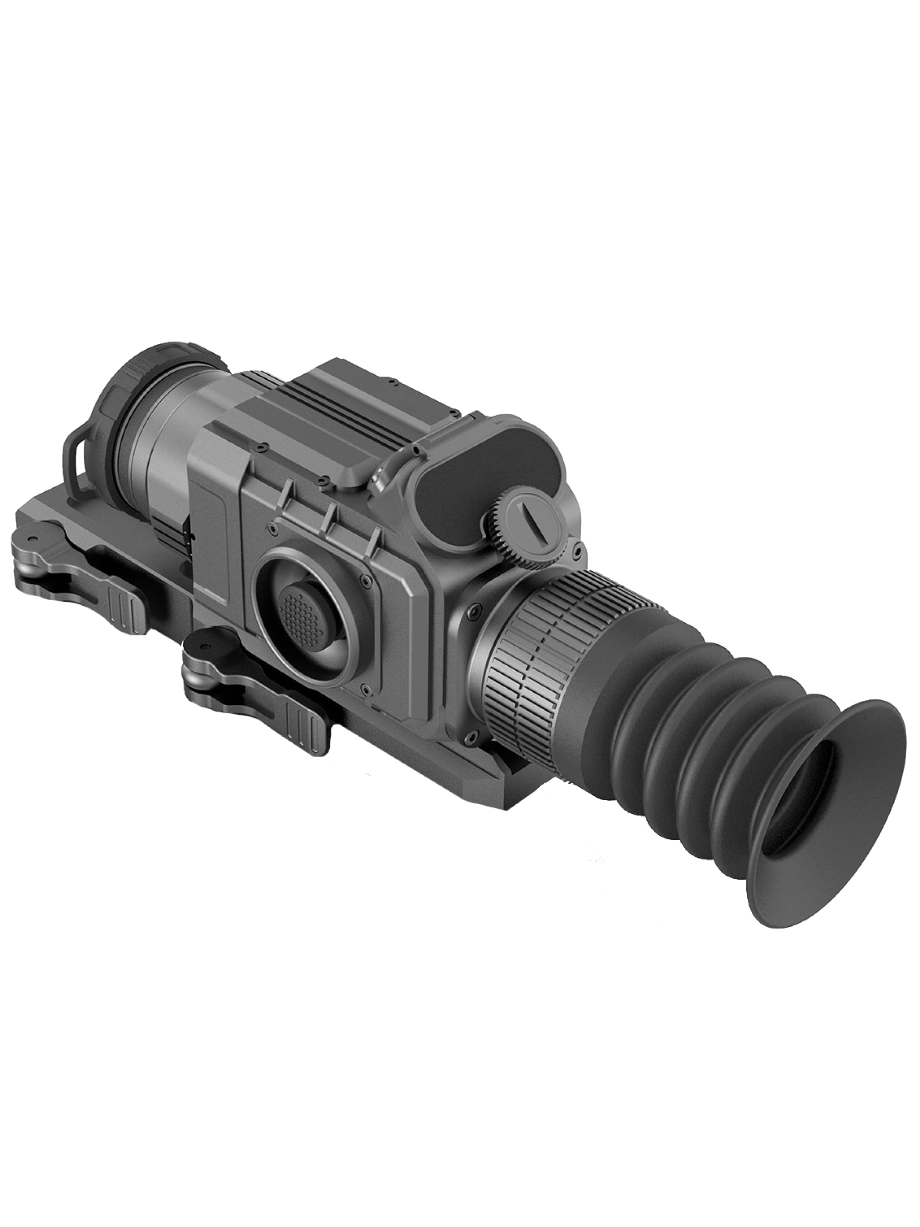 LZIRTEK Perun 335 — высококачественный тепловизионный прицел для решения широкого спектра задач наблюдения за тепловыми объектами. Сенсор с разрешением 384x288 пикселей и объектив 35 мм выводят чёткую картинку в любое время суток на OLED дисплей с разрешением 1024x768. 2 аккумулятора 18650 обеспечивают до 10 часов автономной работы.