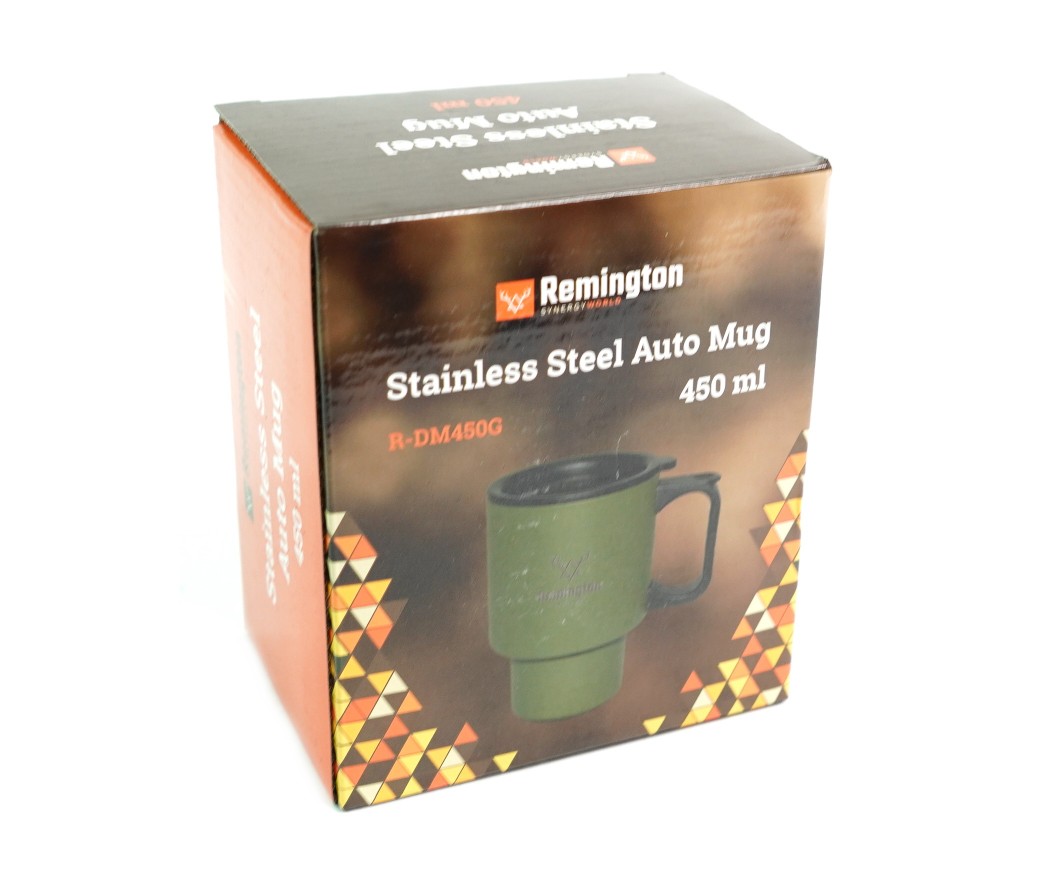 Термокружка Remington Green с объемом 450 мл отлично подойдет для отдыха на природе. Она долго сохраняет тепло внутри, не обжигая при этом ладони и пальцы. Обладает хорошей герметичностью благодаря стенкам и крышке с клапаном.