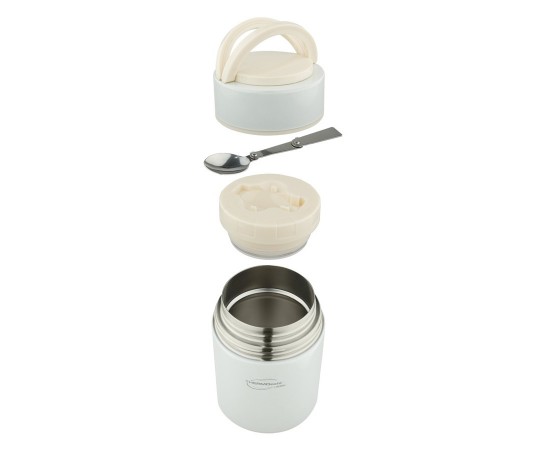 Термос для еды серии популярной серии THERMOcafe позволит насладиться домашней и полезной едой в любом месте и в любое время – в комплект входит складная ложечка из нержавеющей стали. Для её гигиеничного хранения предусмотрена специальная ниша в пробке термоса.