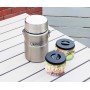 Благодаря широкому горлышку термоса ланч-боксы легко помещать в термоконтейнер и также легко извлекать. Облегчает открывание термоса с горячим содержимым пробка особой конструкции, позволяющей уравновесить давление воздуха благодаря наличию специального клапана. Объёмную двуслойную крышку контейнера из пищевого термостойкого пластика и нержавеющей стали можно использовать как миску (430 мл).