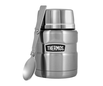 Термос для еды серии KING торговой марки THERMOS – лучший вариант для полноценного обеда вне дома, для автопутешествий, походов на пикник, рыбалки или охоты – любое блюдо сохранится в нем горячим не менее 9 часов или холодным и свежим в течение 14 часов.