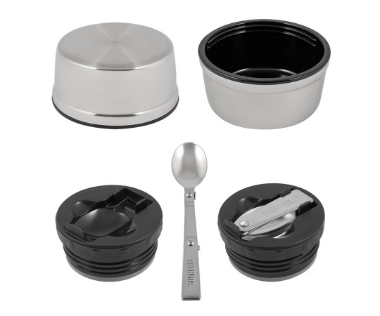 Широкое горло, полноразмерная крышка-чашка и металлическая складная ложка позволяют использовать термос для первых или вторых блюд. Объем термоса рассчитан на 1-2 приёма пищи. Термос прост в уходе, абсолютно герметичный, легкий и компактный, чем удобен в транспортировке и хранении.