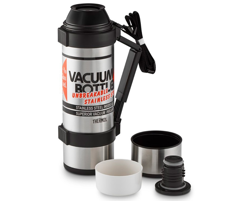 Термос разработан японской корпорацией Nissan Thermos и занимает лидирующие позиции по температурным характеристикам. Винтовая пробка имеет пазы для выливания напитков. Чтобы налить напиток в чашку, достаточно повернуть пробку на пол-оборота и не выкручивать её полностью. На верхней стороне пробки предусмотрены указатели потока жидкости.