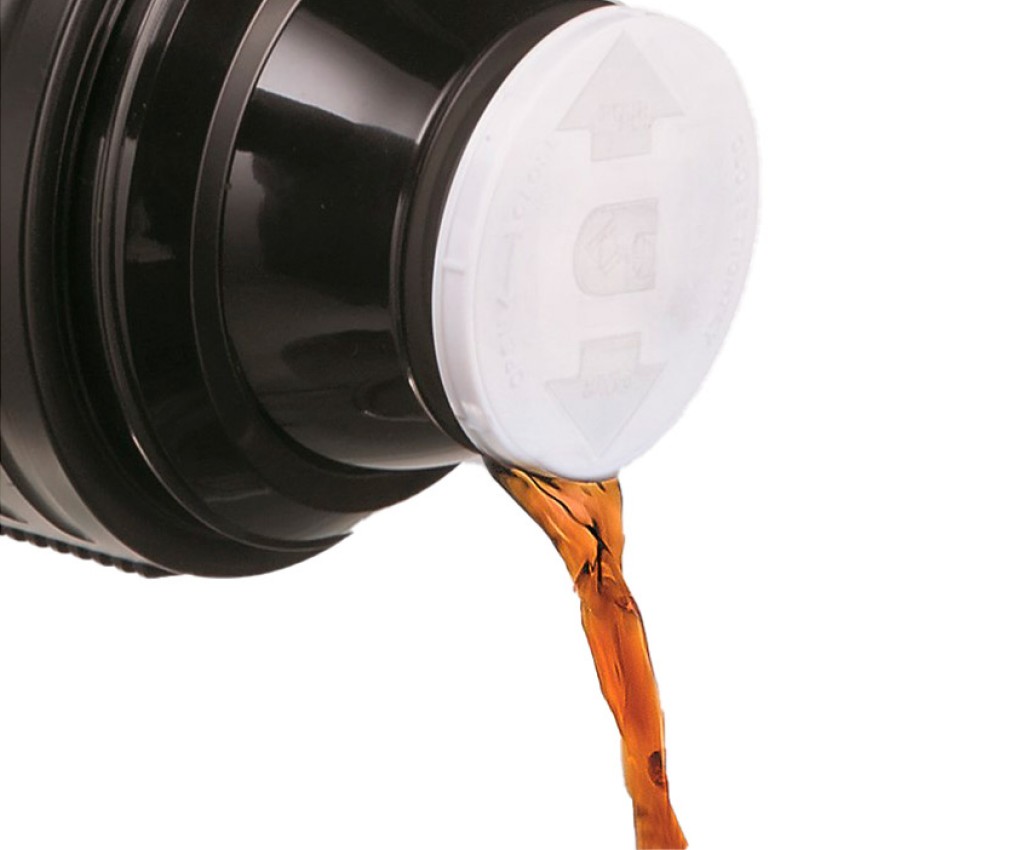 Высокие температурные характеристики термоса обеспечиваются за счёт инновационной технологии создания глубокого вакуума в межстеночном пространстве, а также благодаря теплосберегающей конструкции пробки. При наливании напитка в крышку-чашку нет необходимости выкручивать пробку полностью — достаточно повернуть её на пол-оборота. В пробке предусмотрены две прокладки из термостойкого пищевого силикона, обеспечивающие герметичность изделия. Для удобства использования термоса на верхней части пробки стрелками обозначены направления потока жидкости, а также положения пробки «open/close».