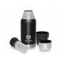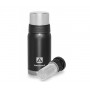 Термос с узким горлом и глухой пробкой со съемным ситечком, 2 накручивающиеся чашки в комплекте. Молотковая эмаль на корпусе дополнительно защищает термос от сколов и царапин. Объем 0,5 л компактный размер.