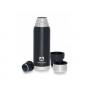 Термос с узким горлом и глухой пробкой, 2 накручивающиеся чашки в комплекте. Молотковая эмаль на корпусе дополнительно защищает термос от сколов и царапин. Объем 0,75 л.