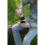 Термос для напитков, пробка с кнопкой, с кожаной вставкой на корпусе. Объем 0,5л.