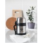 Термос с универсальной пробкой для напитков и еды. Объем 0,6 л. В комплект входит дополнительная чашка и съемный ремешок для переноски. Термос снабжен складной ручкой.