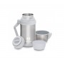 Термос с универсальной пробкой для напитков и еды. Объем 1,2 л. В комплект входит дополнительная чашка и съемный ремешок для переноски. Термос снабжен складной ручкой.
