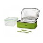 Термосумка объемом 2 л. с 1 контейнером на 1,5л. для горячих и холодных блюд, можно разогревать в микроволновой печи без крышки и мыть в посудомоечной машине, вилка и ложка в комплекте