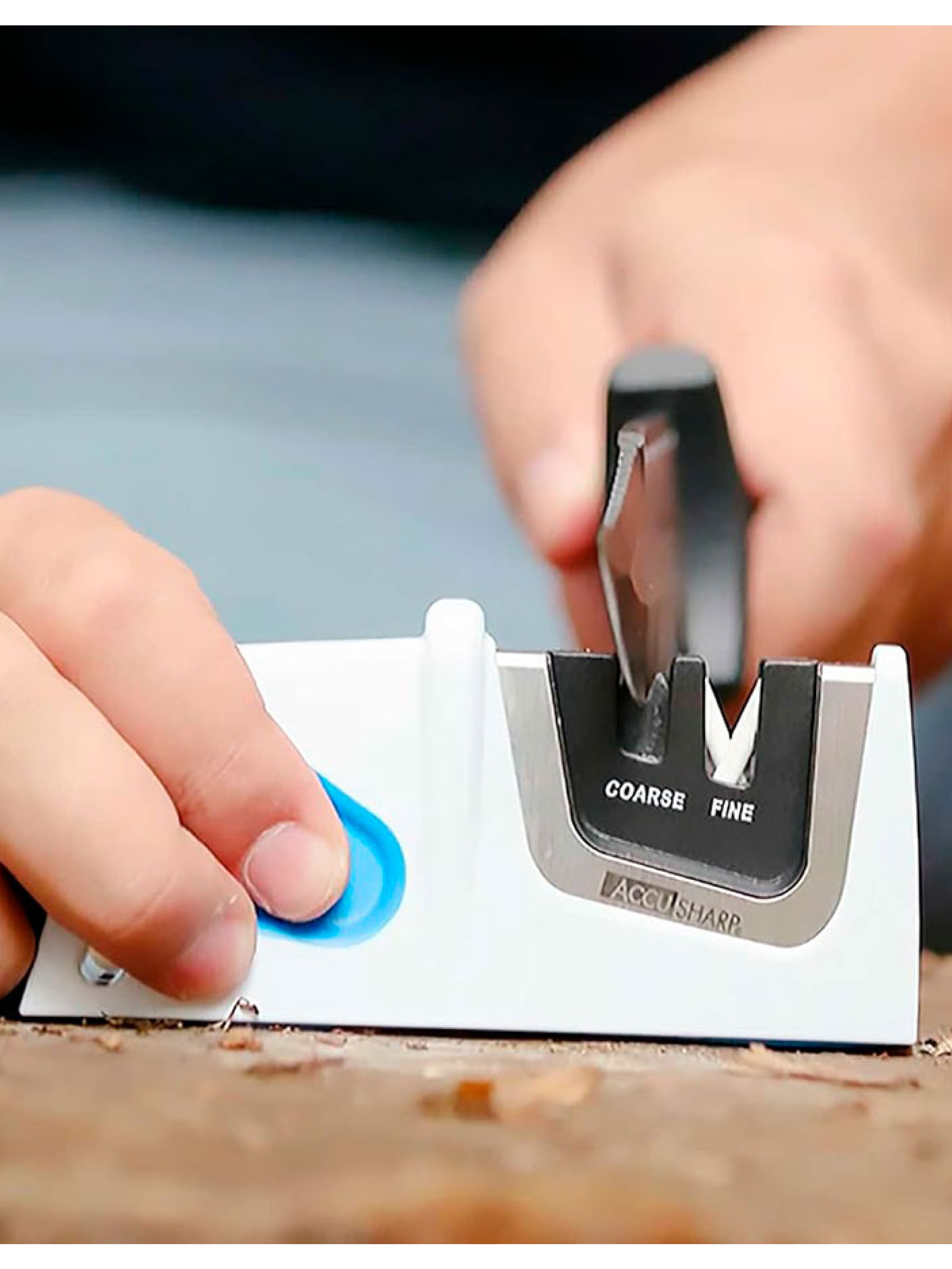 Точилка AccuSharp Compact Pull-Through имеет компактную и устойчивую форму, удобную безопасную рукоять для прочного удержания во время заточки.