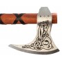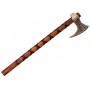 Denix 605 воссоздает классический скандинавский топор с широким полукруглым лезвием и длинной деревянной рукоятью. Головка оружия выполнена из металла с искусственными следами старения, придающими аутентичность. Гравировка на топорище и клинке отсылает к северной культуре и традициям украшения оружия рунными символами.