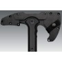 Эту модель часто приравнивают к индейскому томагавку, который уже заслужил похвалы во всем мире. Такие томагавки могут быть туристическими или тактическими. Оба вида уже несколько лет разрабатываются компанией Cold Steel. Модель 90 PTWH Hawk больше универсальная, она хорошо сбалансирована и идеально подходит для множества видов работ вне дома. Как уверяют конструкторы, топор сделан так, что если его метнуть, то вонзится его рабочая часть, а не рукоятка. Материалом для последней выбран полипропилен, он придет легкости. Топор можно с комфортом держать в любой руке. Для удобства хвата возле рукояти имеются выемки для пальцев, особенно удобно их применяют при строгании и мелких работах. Заточка просто прекрасная, ей вполне под силу резать бумагу. Наголовник на клевце не заточен, но с его помощью можно производить хорошие точечные удары. Рабочая часть крепится к рукоятке при помощи двух крепежей, их можно и снять. Лезвие сделано из прочной стали 1955 Carbon Steel. В комплекте есть регулировочные винты. Вес устройства 734 грамма. Рукоятка имеет отверстие для темляка. Лезвие в длину занимает 7,62 см.