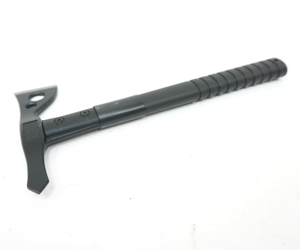 Головная часть топора сделана из устойчивой к коррозии и царапинам нержавеющей стали 420. Особенностью модели является установленный вместо обуха металлический шипообразный не заточенный выступ.