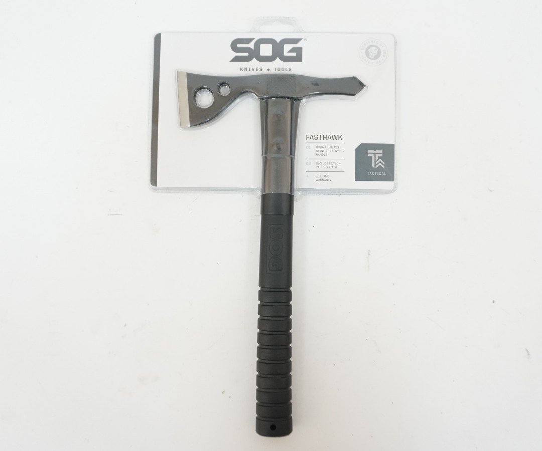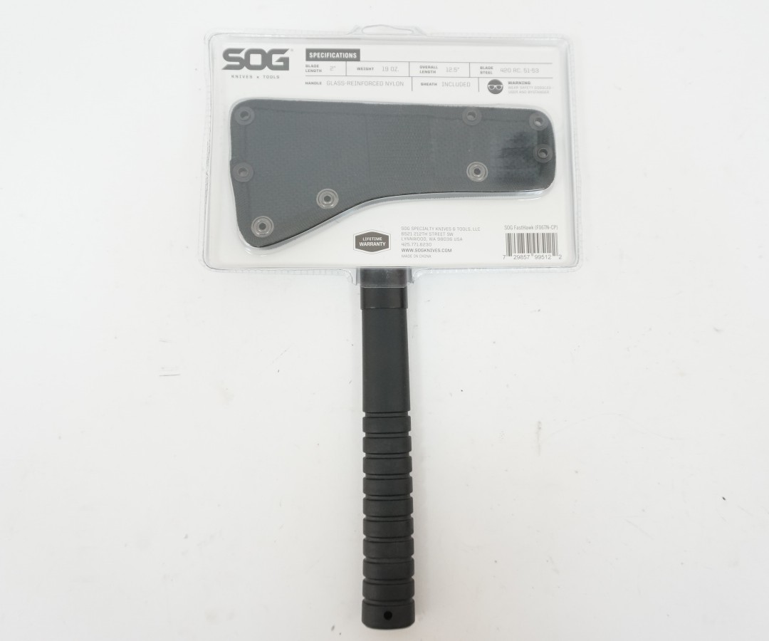 Тактический метательный топор FastHawk F06T, производимый фирмой SOG, является немного уменьшенной версией модели F01T. Однако при довольно грозном виде он вполне способен рубить ветки деревьев и дрова.