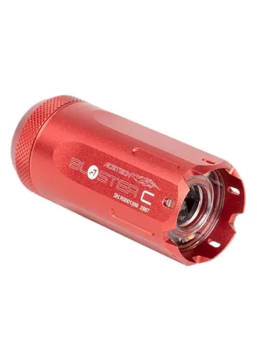 Blaster C оснащен надежным корпусом с защитой от пыли и влаги по стандарту IP65. Насадка имеет стандартную резьбу 14- (CCW) и комплектуется адаптером на 11+ (CW), что обеспечивает совместимость с широким спектром страйкбольного оружия.