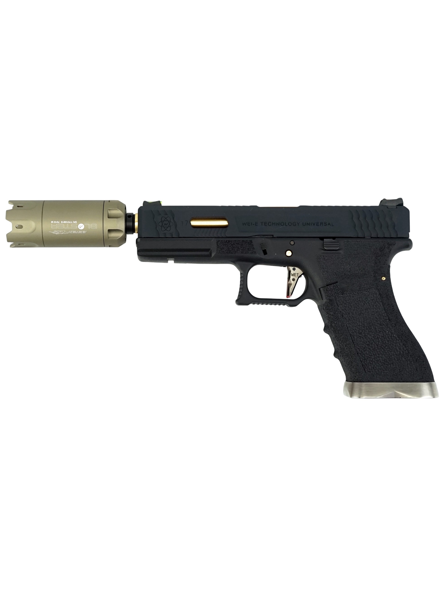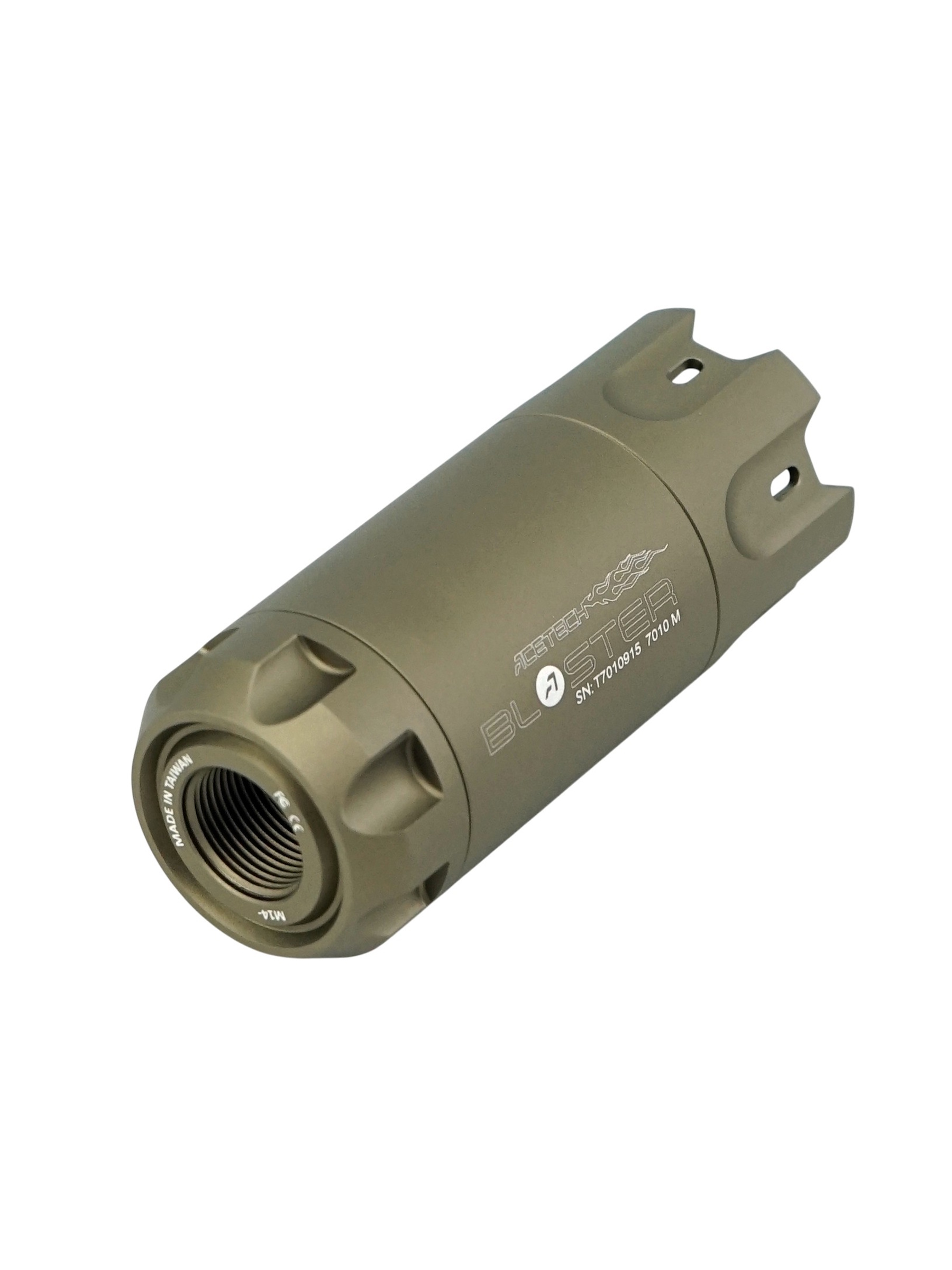 Насадка Blaster отличается прочным и герметичным корпусом с защитой от пыли и влаги по стандарту IP65. Она оснащена стандартной 14-мм резьбой CCW (против часовой стрелки) и комплектуется адаптером для 11-мм резьбы CW (по часовой стрелке), обеспечивая совместимость с большинством страйкбольных приводов.