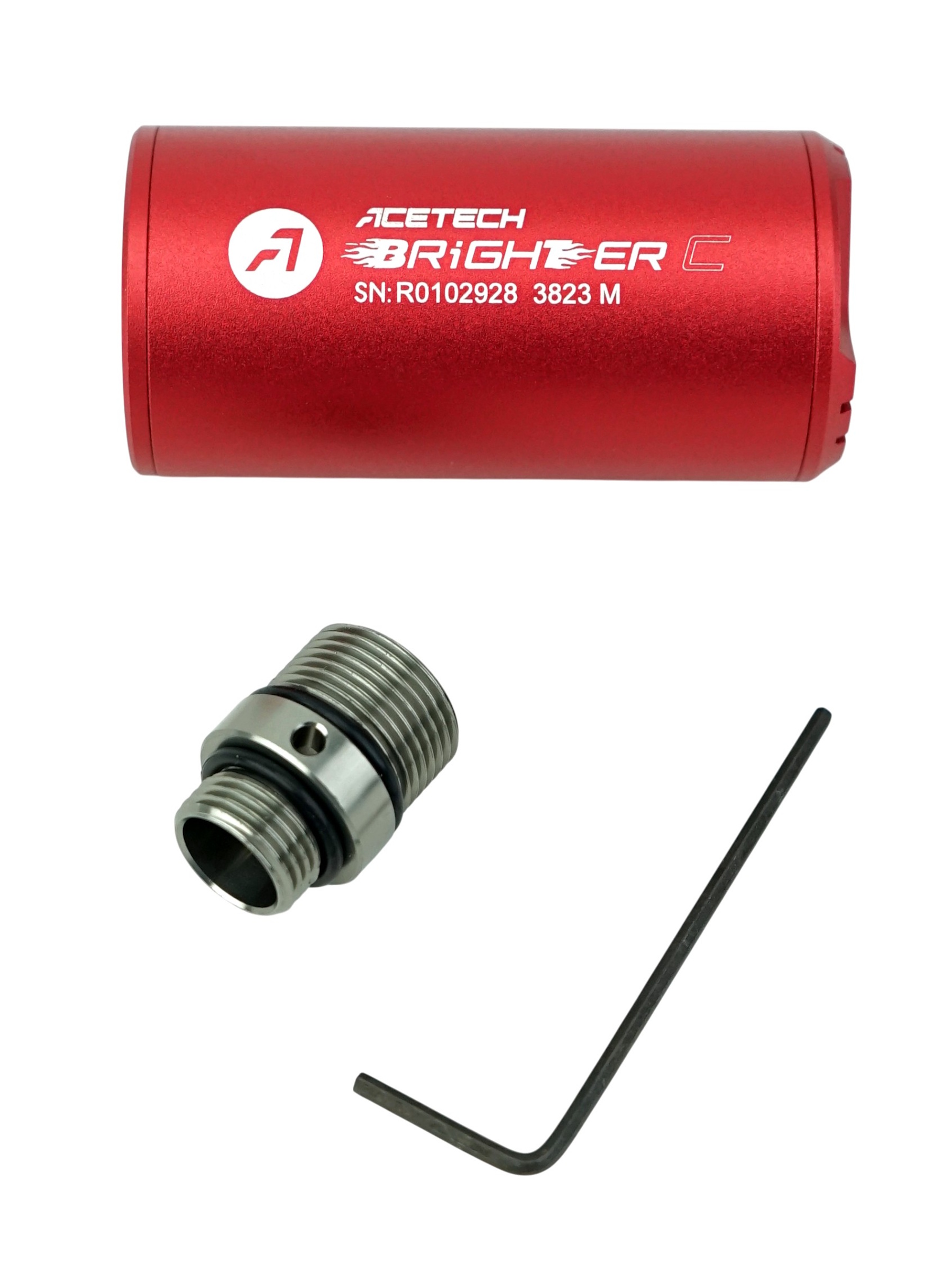 Представляем компактный и функциональный трассер от Acetech, разработанный для яркой подсветки зеленых трассерных шаров! Этот универсальный девайс можно использовать как классическую насадку, накручивающуюся на ствол, или же в качестве трассерного модуля, устанавливаемого внутрь глушителей. Корпус Brighter C оснащен стандартной 14-мм резьбой CCW (против часовой стрелки). Для расширения совместимости в комплект включен адаптер-переходник на 11-мм резьбу CW (по часовой стрелке).