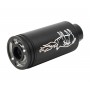 Имеет встроенный литий полимерный аккумулятор, заряда которого хватает на 20.000 выстрелов. Заряжается от обычной USB зарядки через разъём типа micro-USB. Устанавливается на резьбу М14-, в комплекте имеется переходник на резьбу М10+ (для пистолетов)