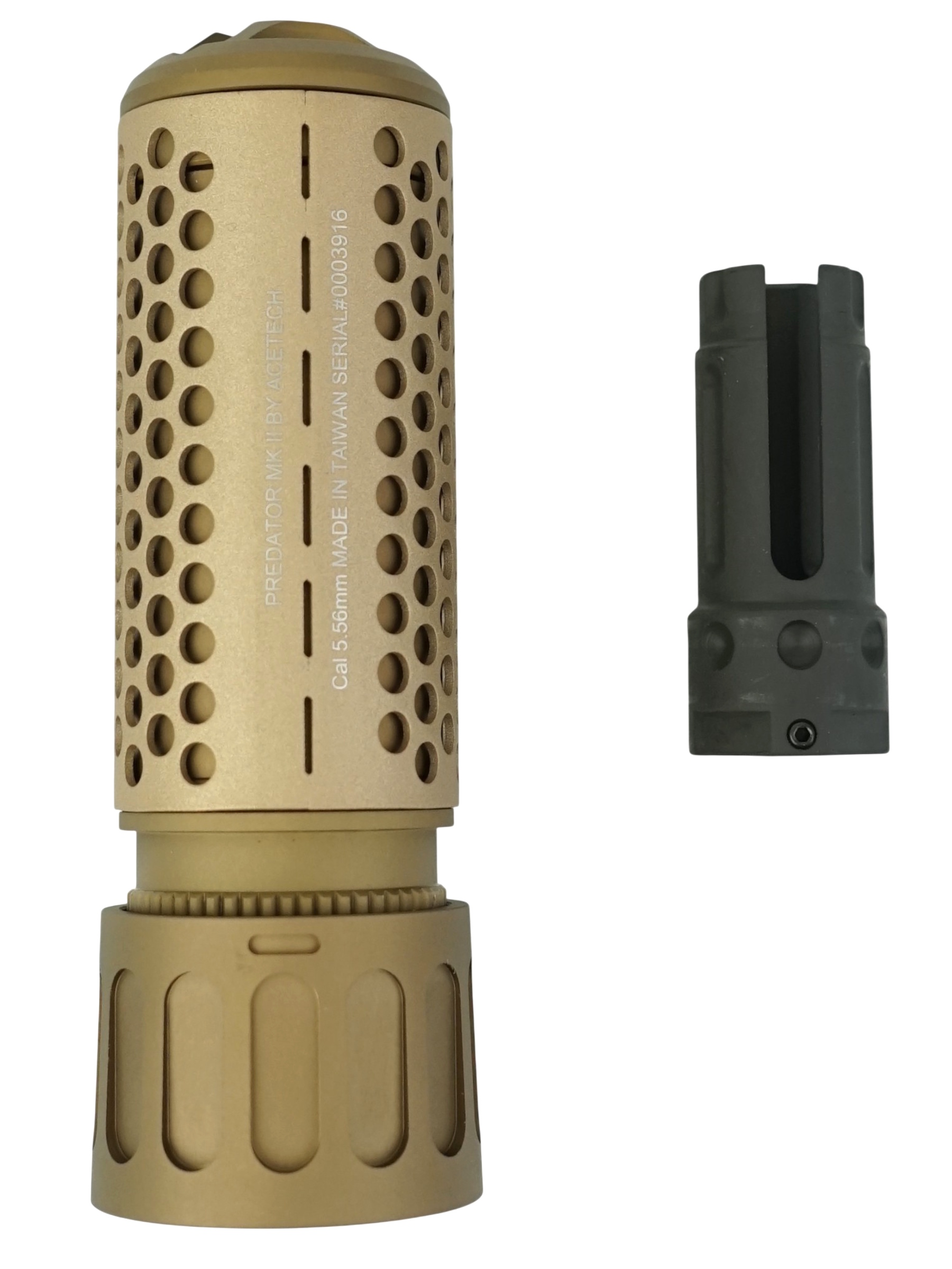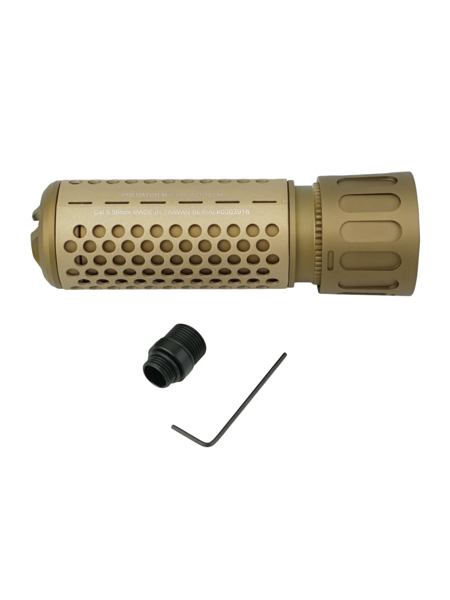 Predator MKII готов к работе с вашим оружием, поддерживая высокую скорострельность до 35 выстрелов в секунду. Он легко устанавливается на страйкбольные приводы с резьбой M14- CCW. В комплекте также идет адаптер (с M14 CCW на M11 C), расширяющий возможности установки.