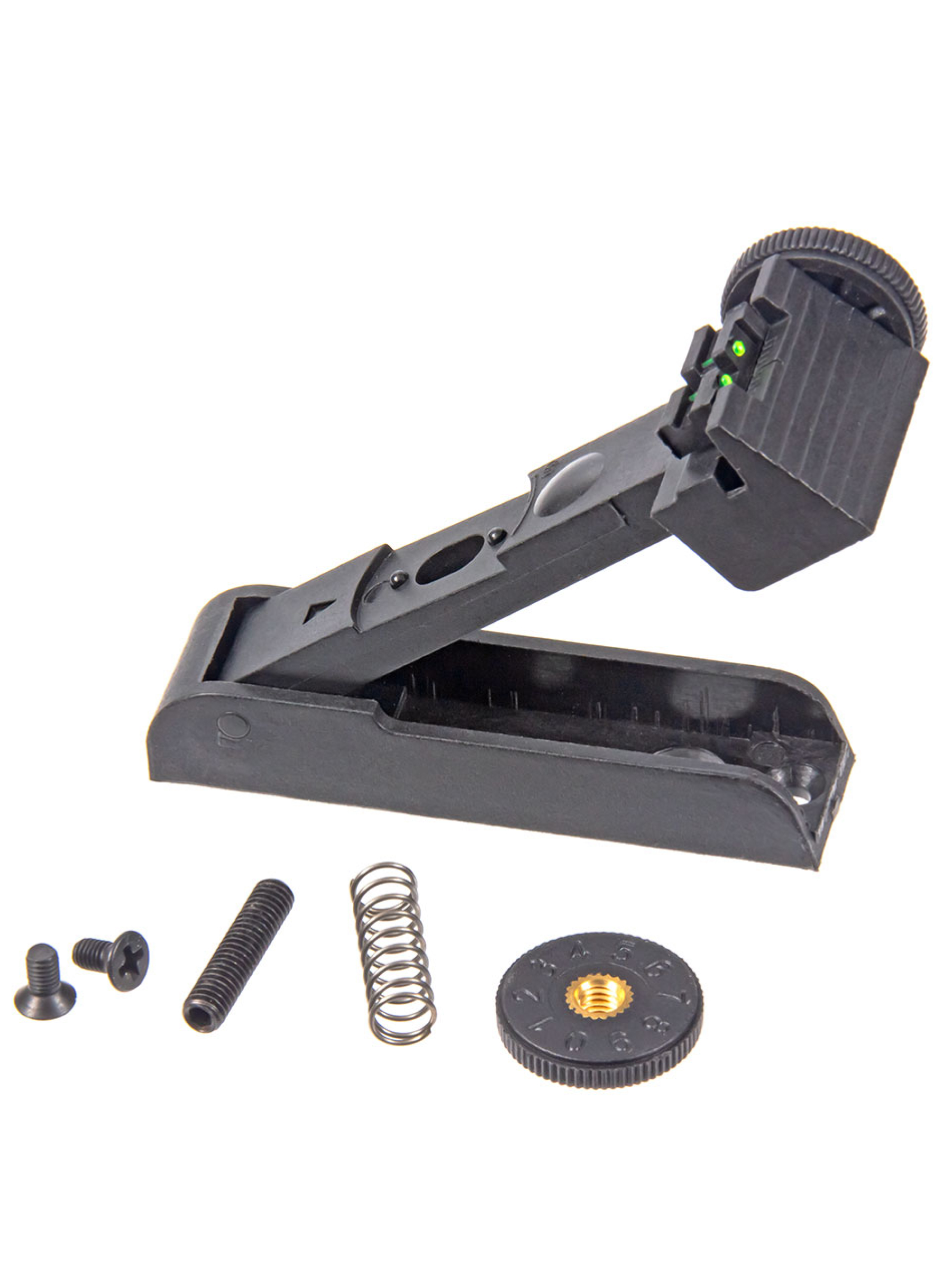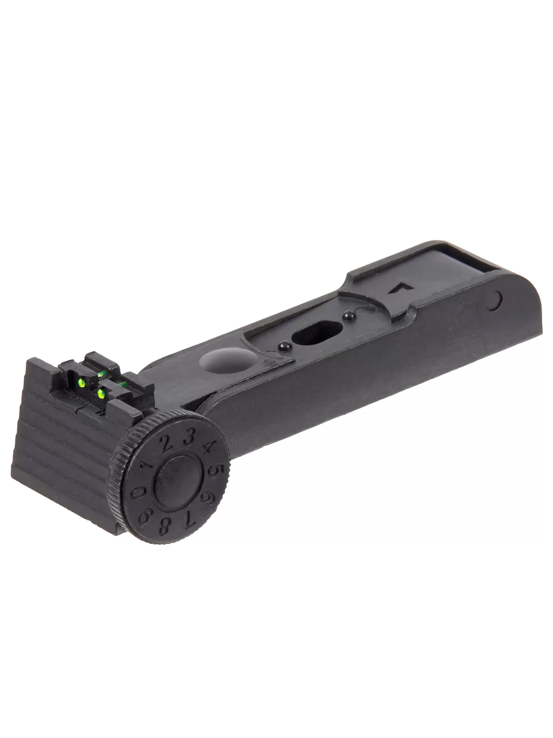 Изготовлен из огнестойкого полиамида армированного 20% стекловолокном. Благодаря этому обеспечивается прочность и надёжность всей конструкции. Имеет оптоволоконные элементы зелёного цвета, накапливающие солнечный свет и помогающие целиться в сумерках.