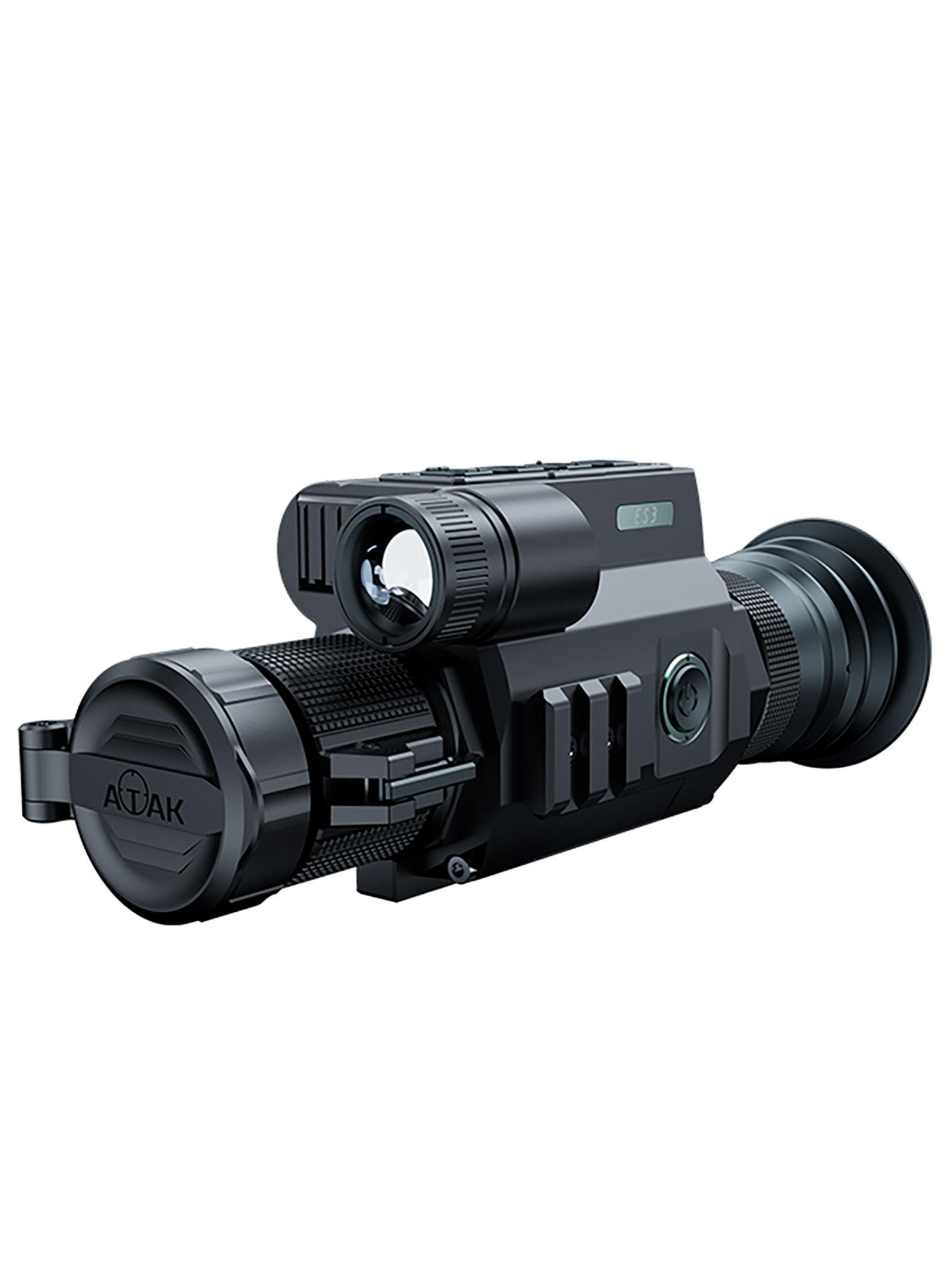 Цифровой прицел ночного видения ATAK ES3-LRF с объективом 70 мм, кратностью 4.5-9x, встроенным не отъёмным ИК-фонарём с возможностью ручной фокусировки луча, длиной волны 940 нм и дальностью подсветки до 340 метров.