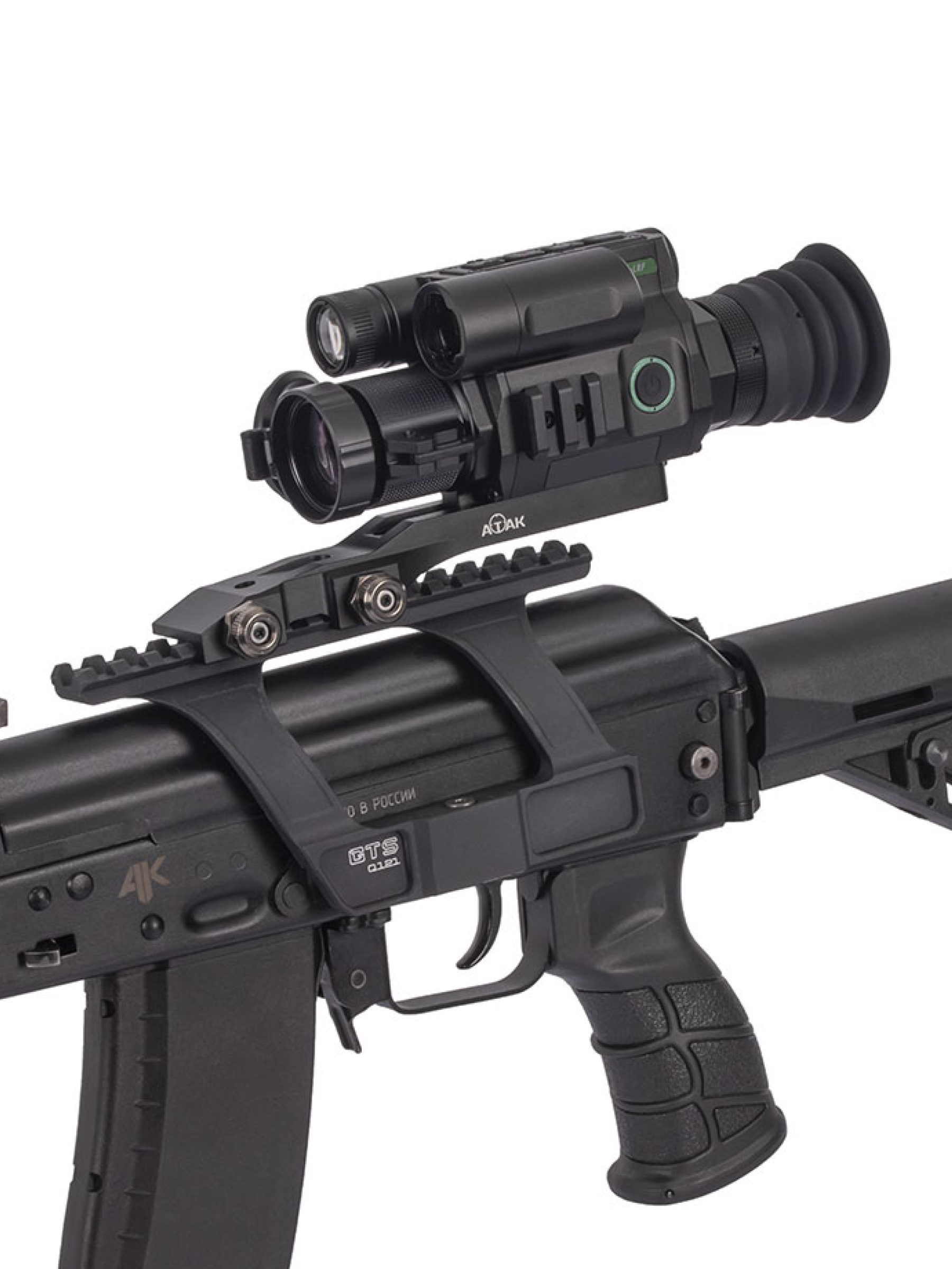 Свет ИК-фонаря с длиной волны 940 нм практически не виден невооружённым глазом и не демаскирует стрелка, обеспечивает хорошую дальность обнаружения целей в темноте до 350 метров. При этом, луч может быть сфокусирован или расфокусирован одним движением руки с помощью линзы на голове фонаря, позволяя стрелку выбрать оптимальную засветку на коротких и средних дистанциях. Фонарь имеет 3 уровня мощности и может быть включен только при выбранном ночном режиме работы.