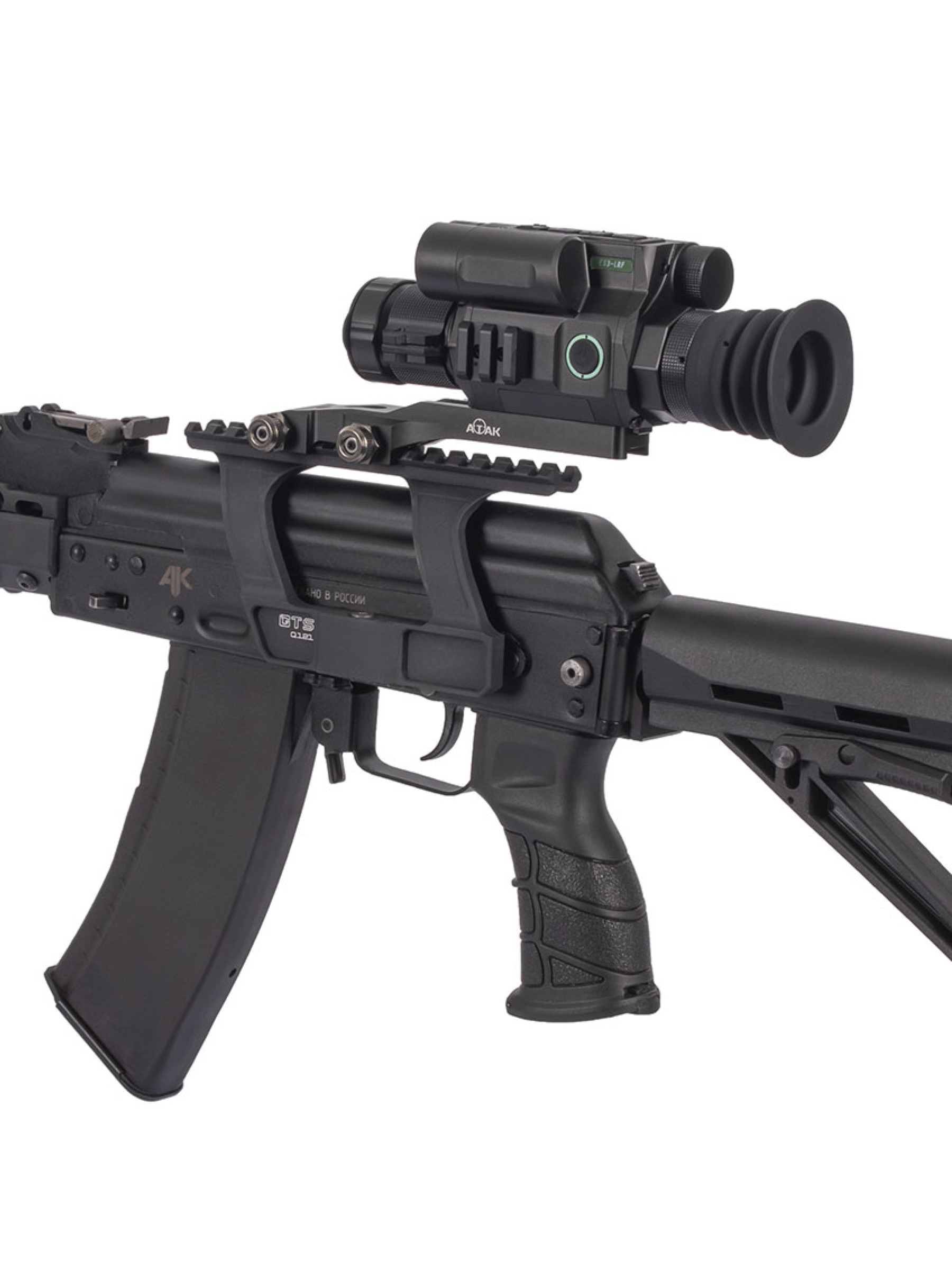 Цифровой прицел ночного видения ATAK ES3-LRF с объективом 70 мм, кратностью 4.5-9x, встроенным не отъёмным ИК-фонарём с возможностью ручной фокусировки луча, длиной волны 940 нм и дальностью подсветки до 340 метров.