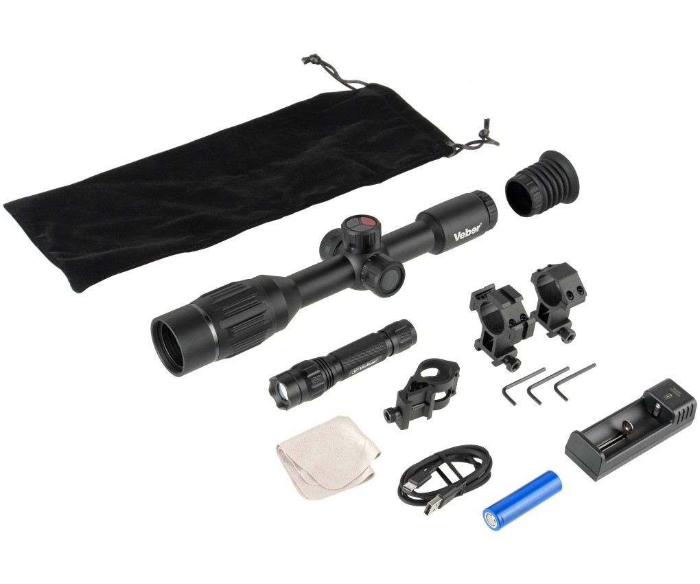 Veber DigitalHunt TU50X4-32 - это цифровой прицел ночного видения, предназначенный для охоты и других задач, требующих точного наблюдения и прицеливания в дневное и ночное время. Он сочетает в себе высокое качество изображения, функциональность, прочность и удобство использования.