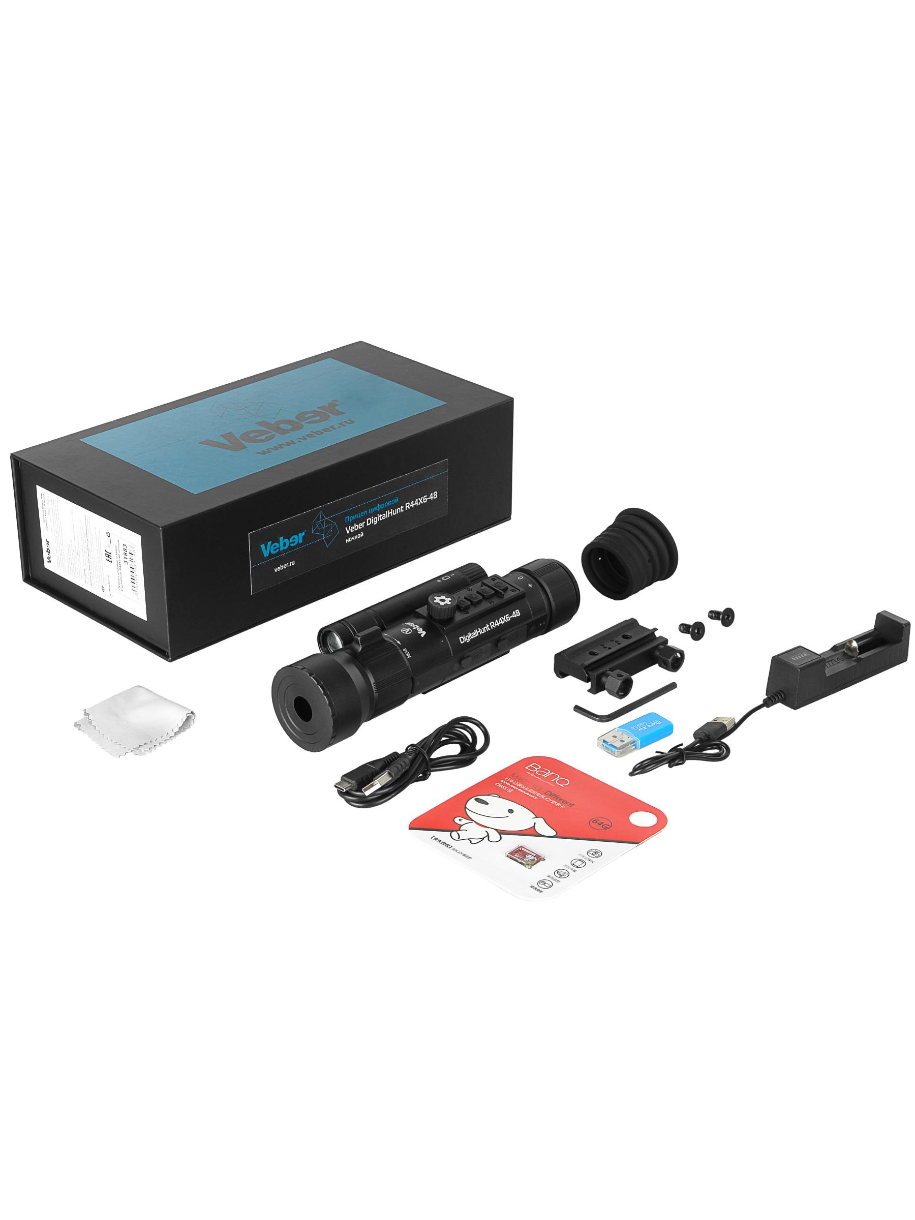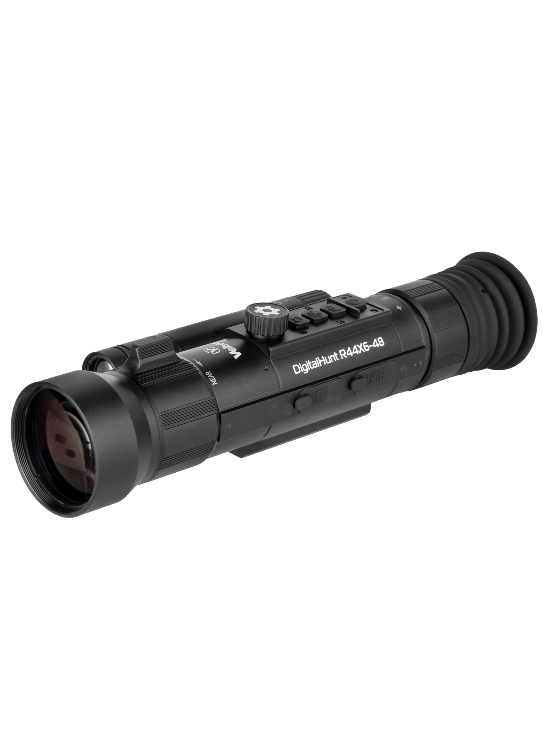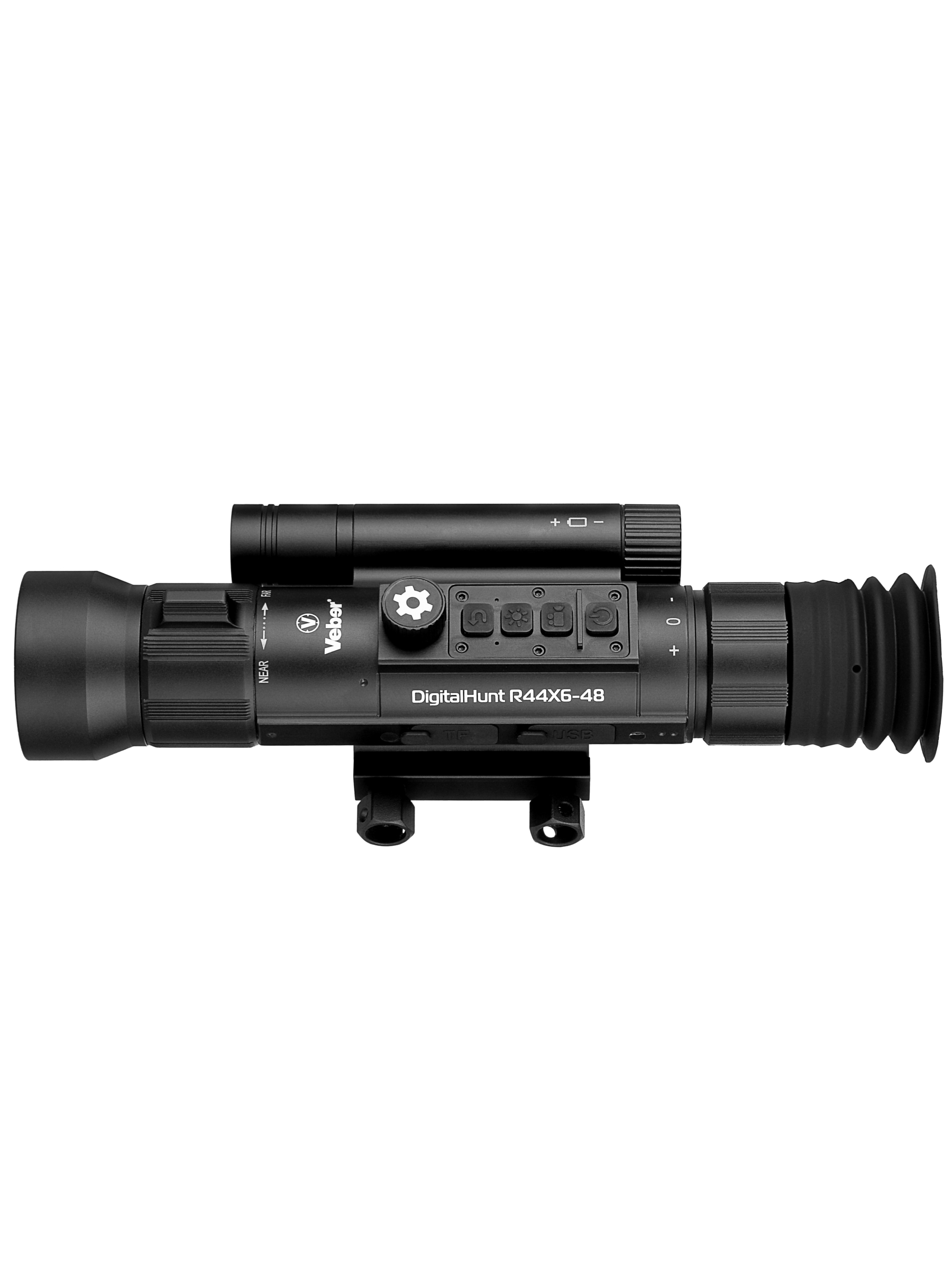 Veber DigitalHunt R44X6-48 – цифровой прицел ночного видения с 6-х кратным оптическим увеличением, расширяемым при помощи цифрового зума до 48х, цветным дисплеем для наблюдения и прицеливания как в дневное, так и в ночное время (в том числе в условиях полной темноты). Прицел может делать фото- и видеосъемку со звуком, а также управляться при помощи смартфона с предустановленным APP-приложением.