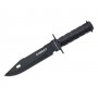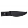 На лезвие нанесено антибликовое покрытие, а на обухе клинка присутствует серрейтор, позволяющий справиться с веревкой или подготовить мелкие сучья для костра. Для удобства упора есть гарда, а рукоятка из пластика имеет внутри специальную полость, в которой можно хранить самые необходимые для выживания предметы: чиркаш, спички, леску и прочее.